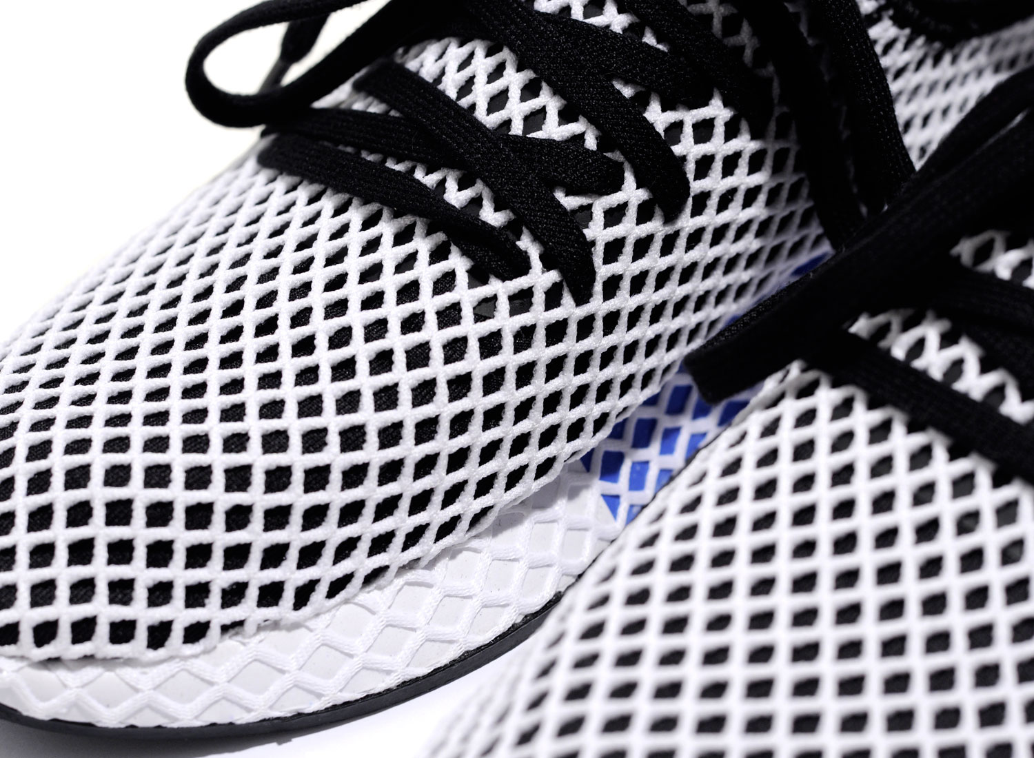 ADIDAS ORIGINALS Deerupt Runner Core Black . Nouvelle silhouette de la marque aux trois bandes, la DEERUPT s'inspire des archives Running des années 80. Empeigne en mesh ultra souple recouverte d'un grille stretch. Midsole EVA Ortholite®. Patch en daim noir sur le talon. Quantités limitées.