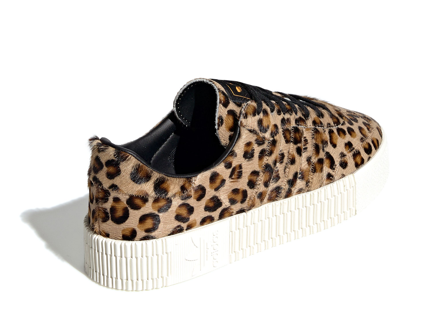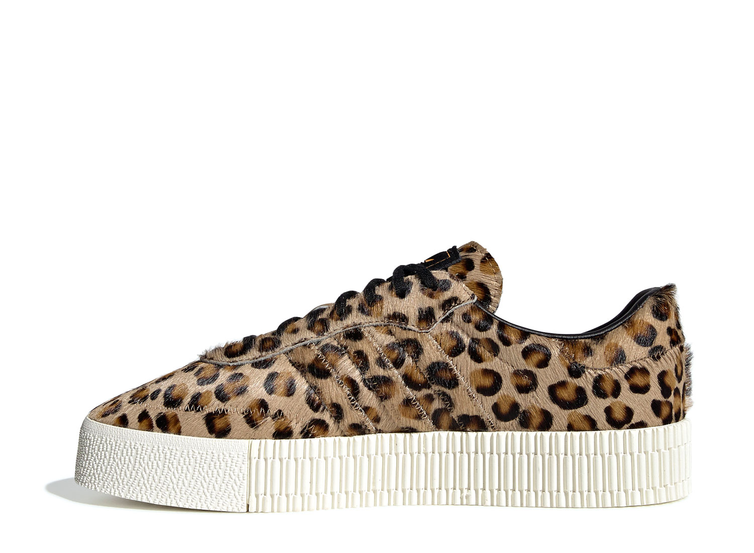 ADIDAS ORIGINALS Sambarose W Core Black CG6461. Empeigne en pony hair imprimé léopard. Semelle compensée.