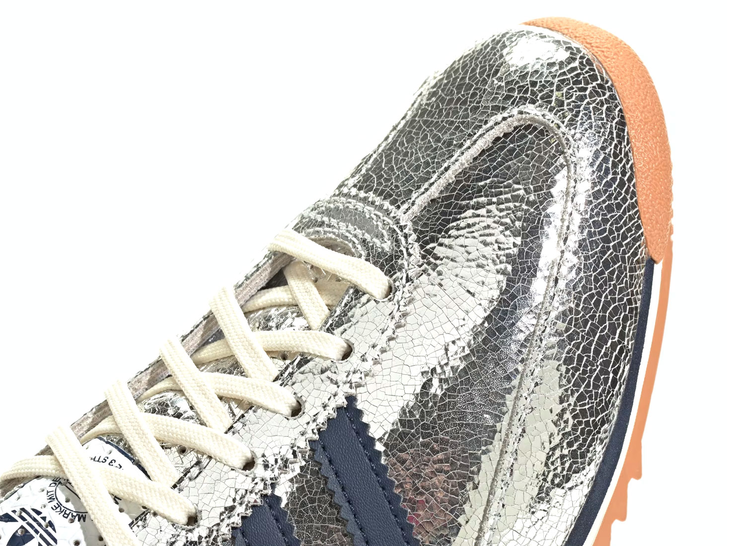 ADIDAS ORIGINALS SL 72 OG Silver Metallic / Collegiate Navy / Off White JH8654. L'iconique SL 72 fait son retour ! Tige silver craquelé. Empiecements en cuir. Semelle gomme.
