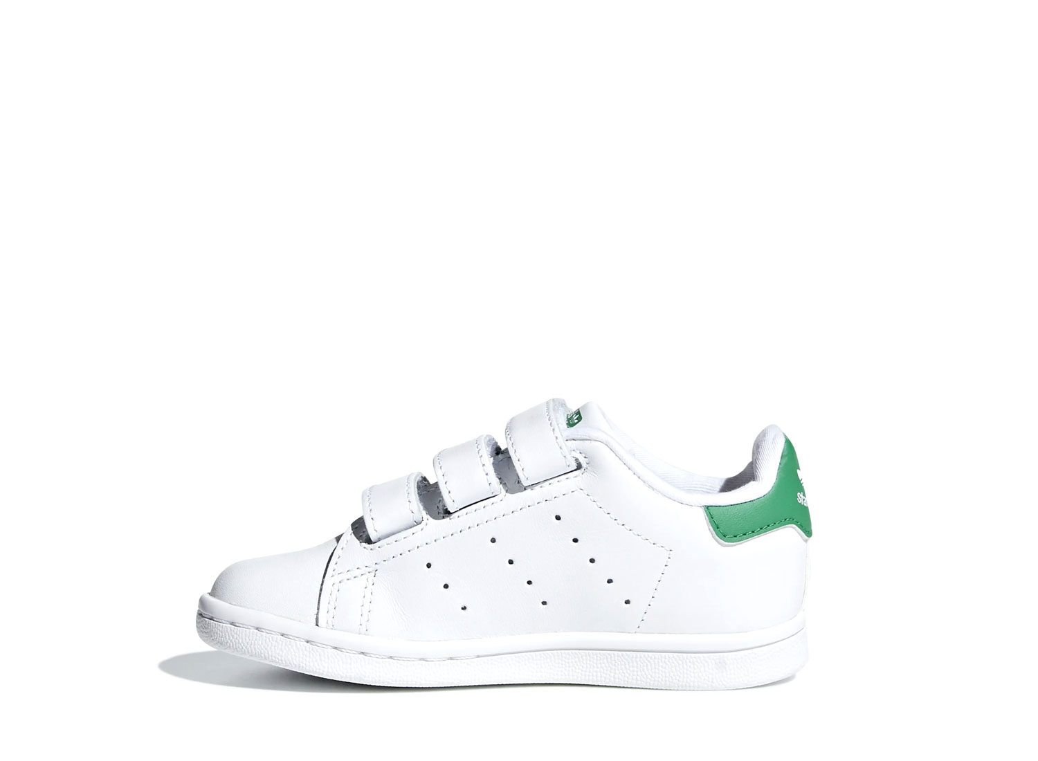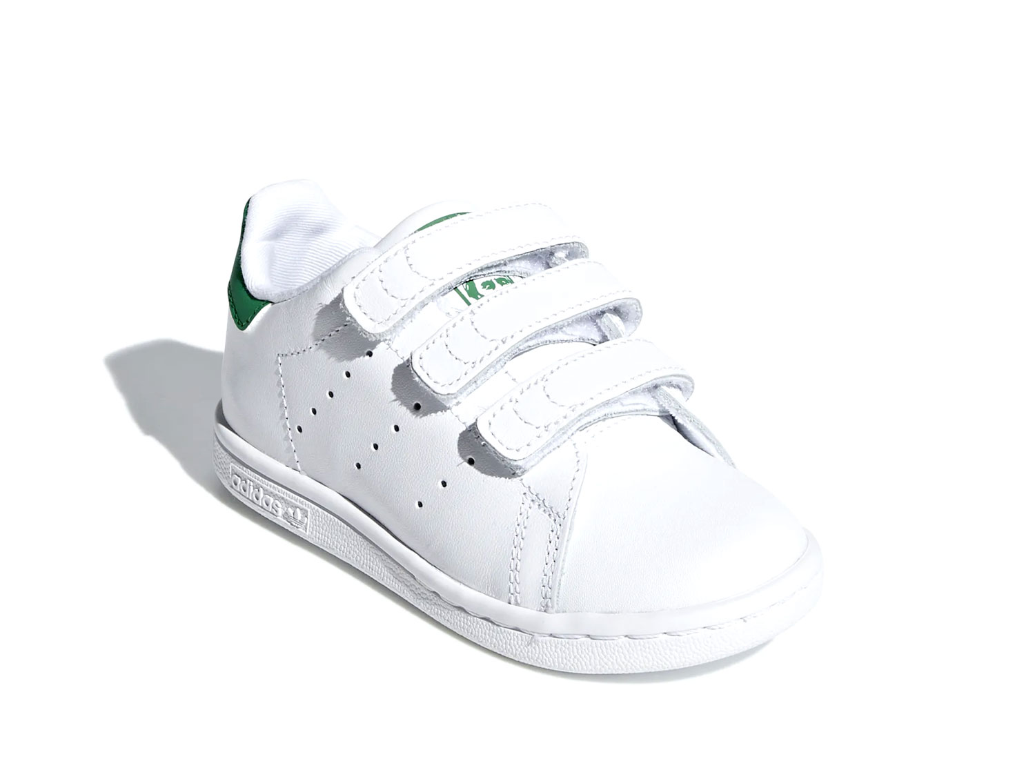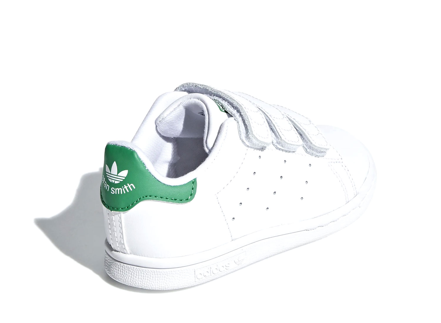 ADIDAS ORIGINALS Stan Smith CF White / Green BZ0520. Stan Smith pour bébé. Empeigne cuir. Fermeture velcros. Talon vert.