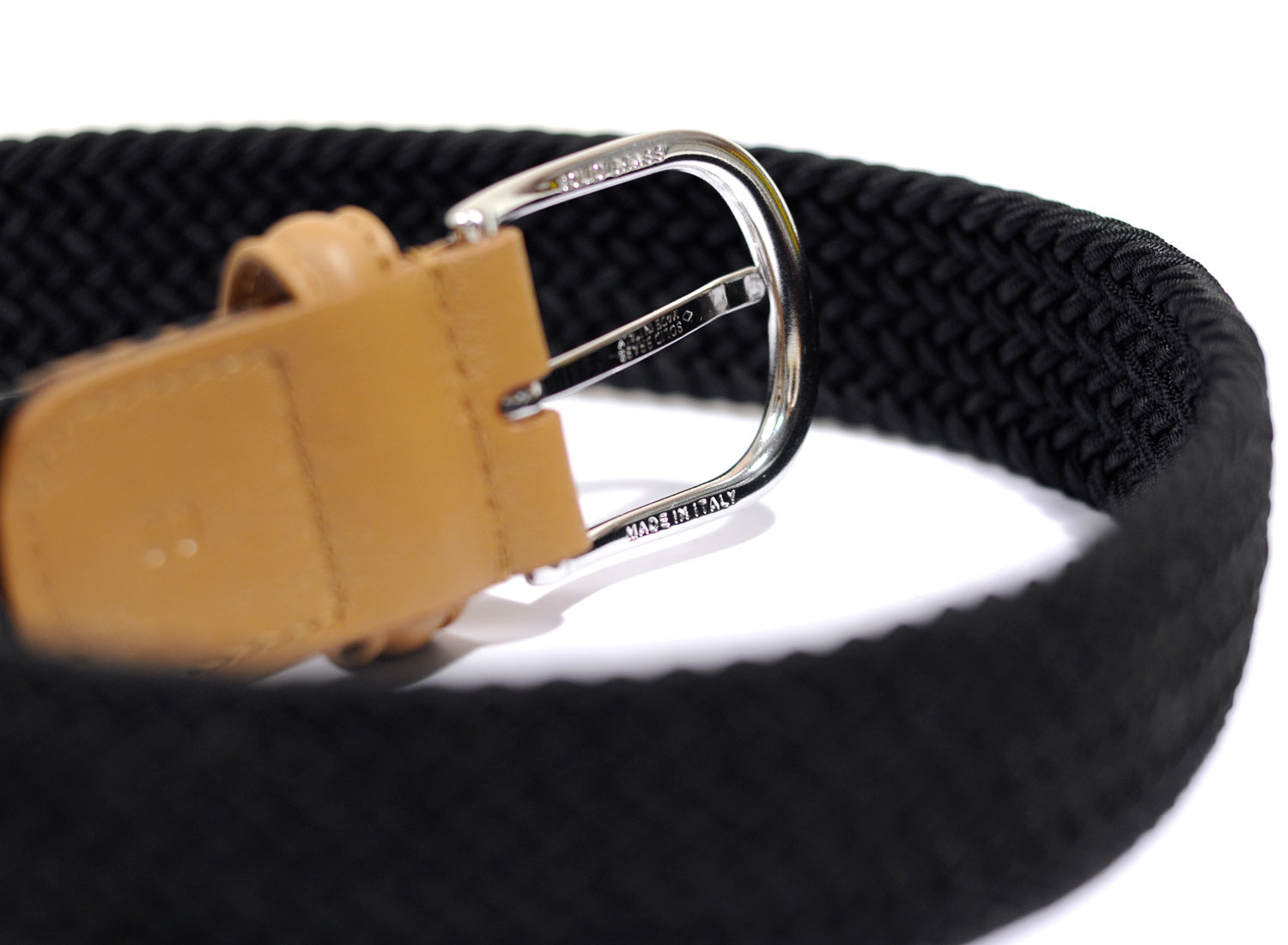 ANDERSONS Ceinture Tressee Elastique Noir. Boucle en métal brossé. Largeur 3,5cm. Un basique intemporel. Fabriqué à la main en Italie.