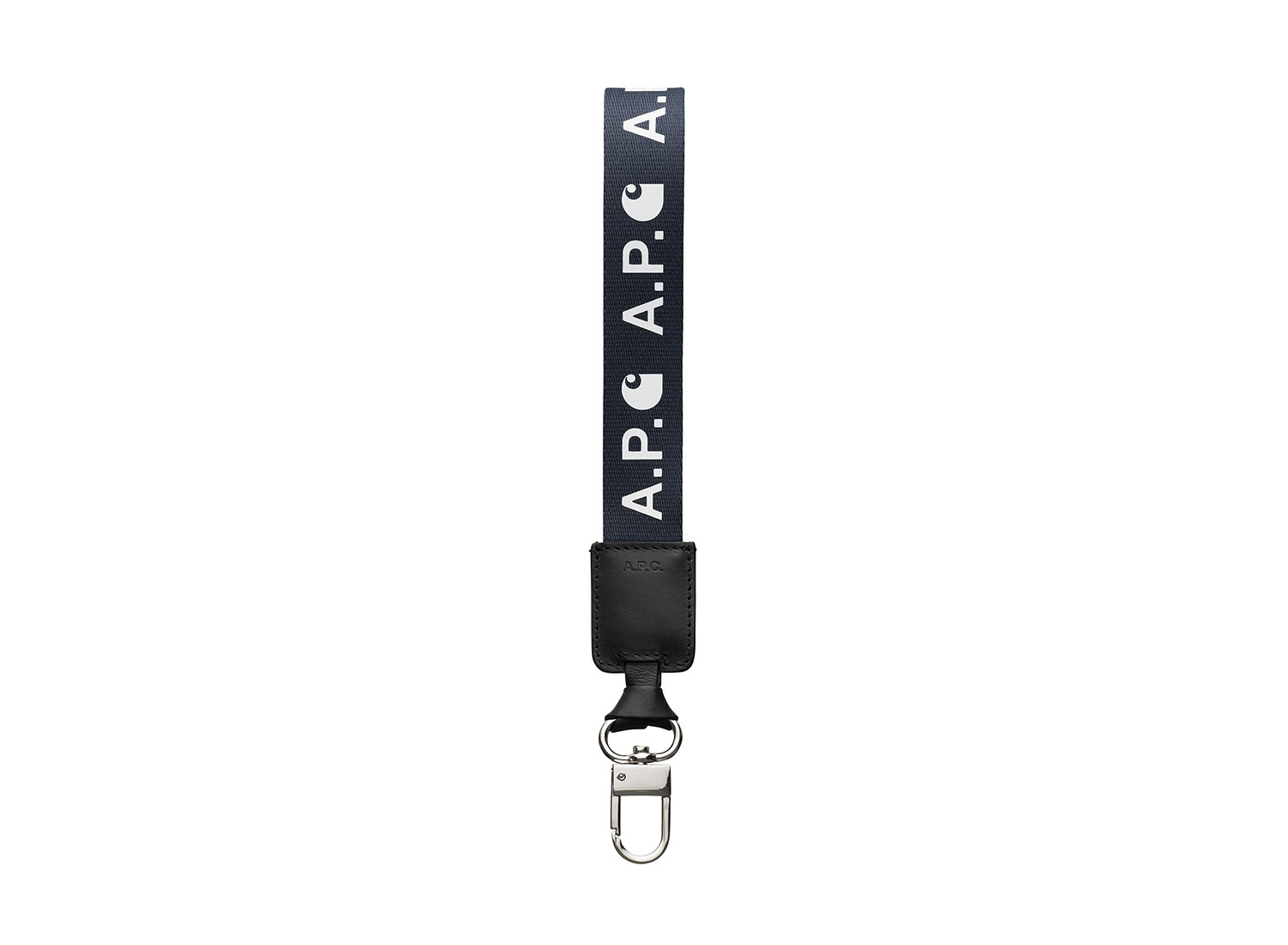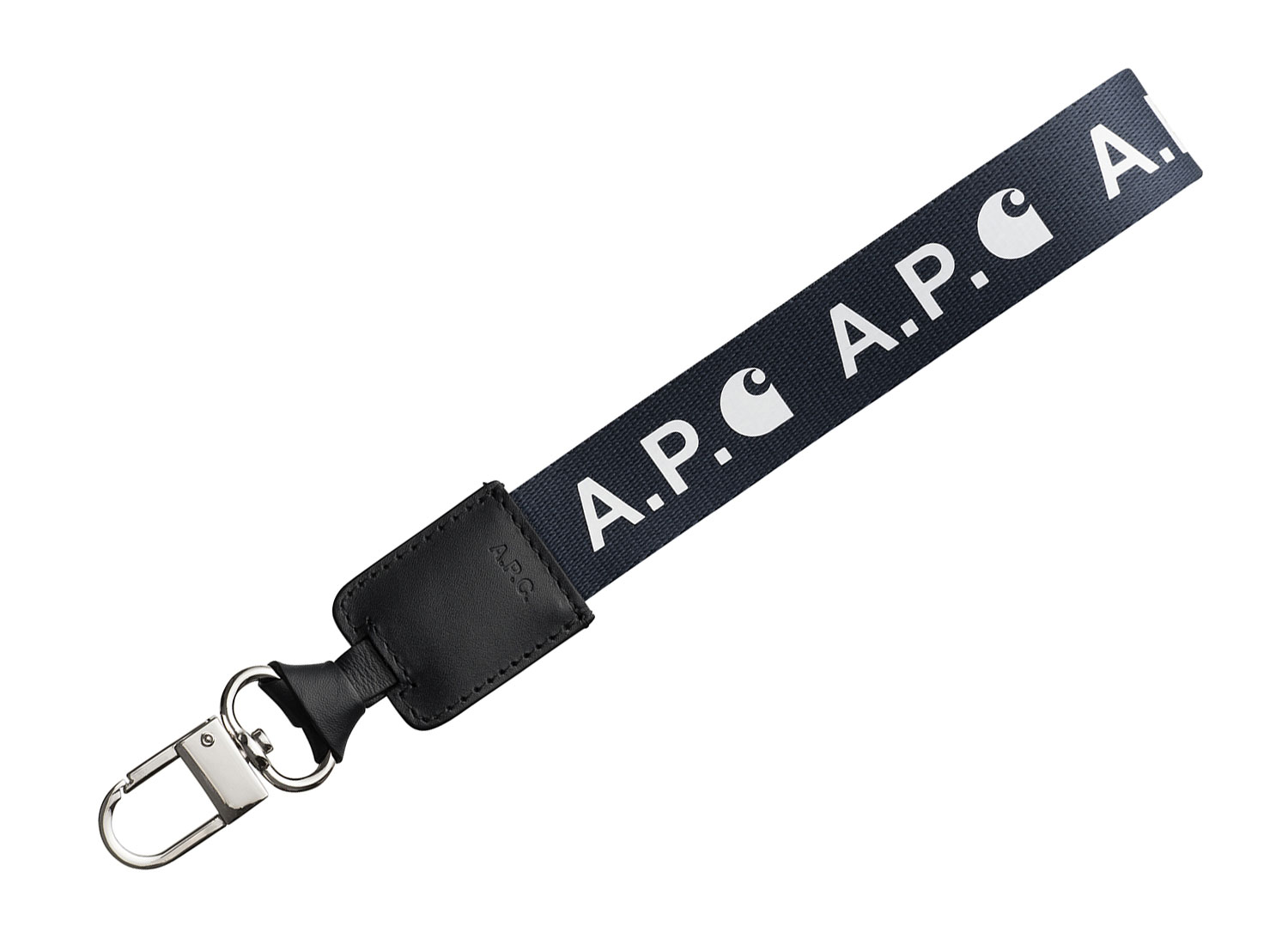 APC x CARHARTT Porte Clefs Finn Indigo. Porte clés en nylon et cuir avec attache en métal.