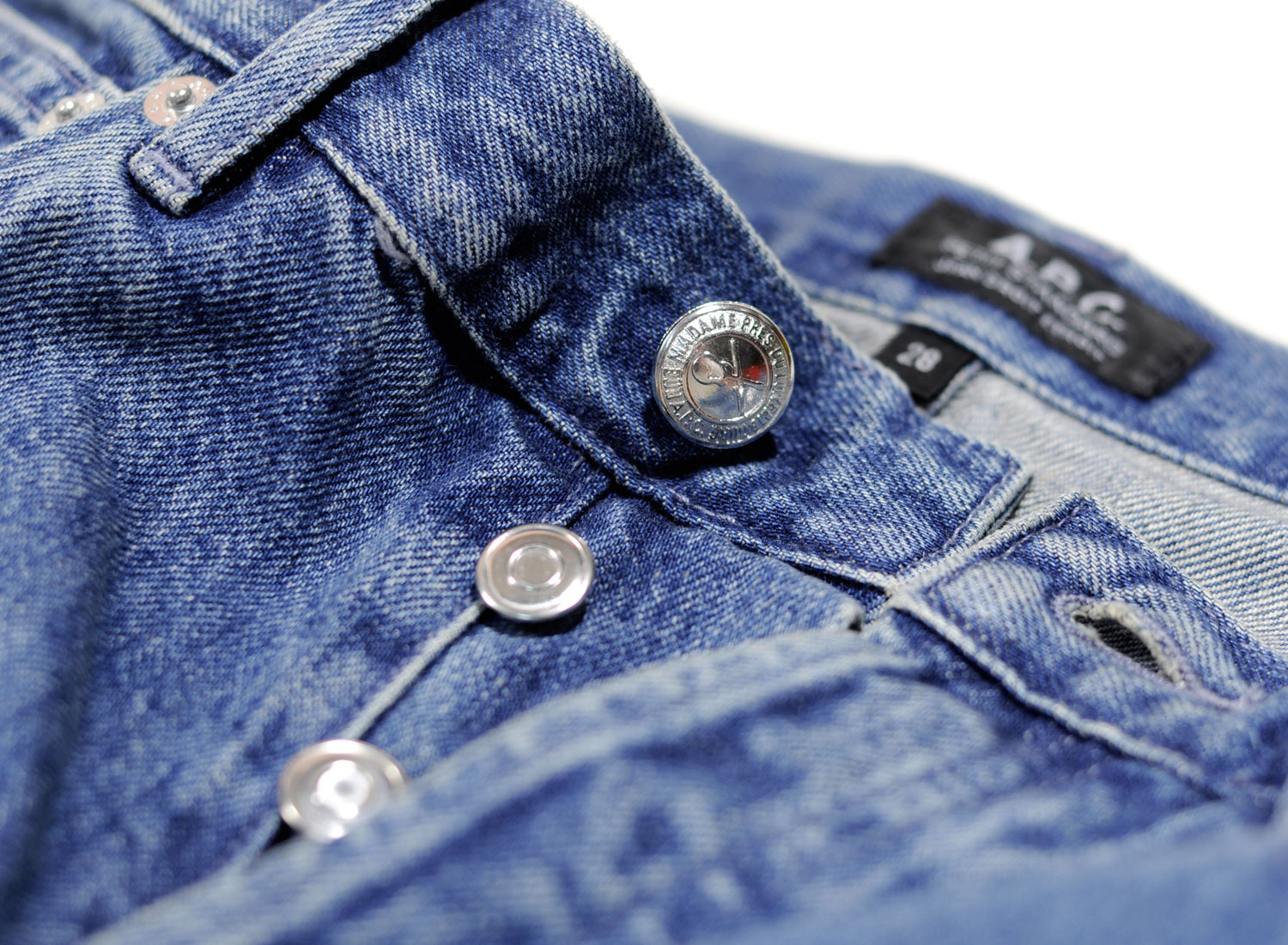 APC Petit Standard Indigo Delave. Petit Standard confectionné en denim japonais délavé. 100% coton. Coupe droite et ajustée. Taille basse et droite. Cinq poches. Braguette boutonnée. Boutons gravés.