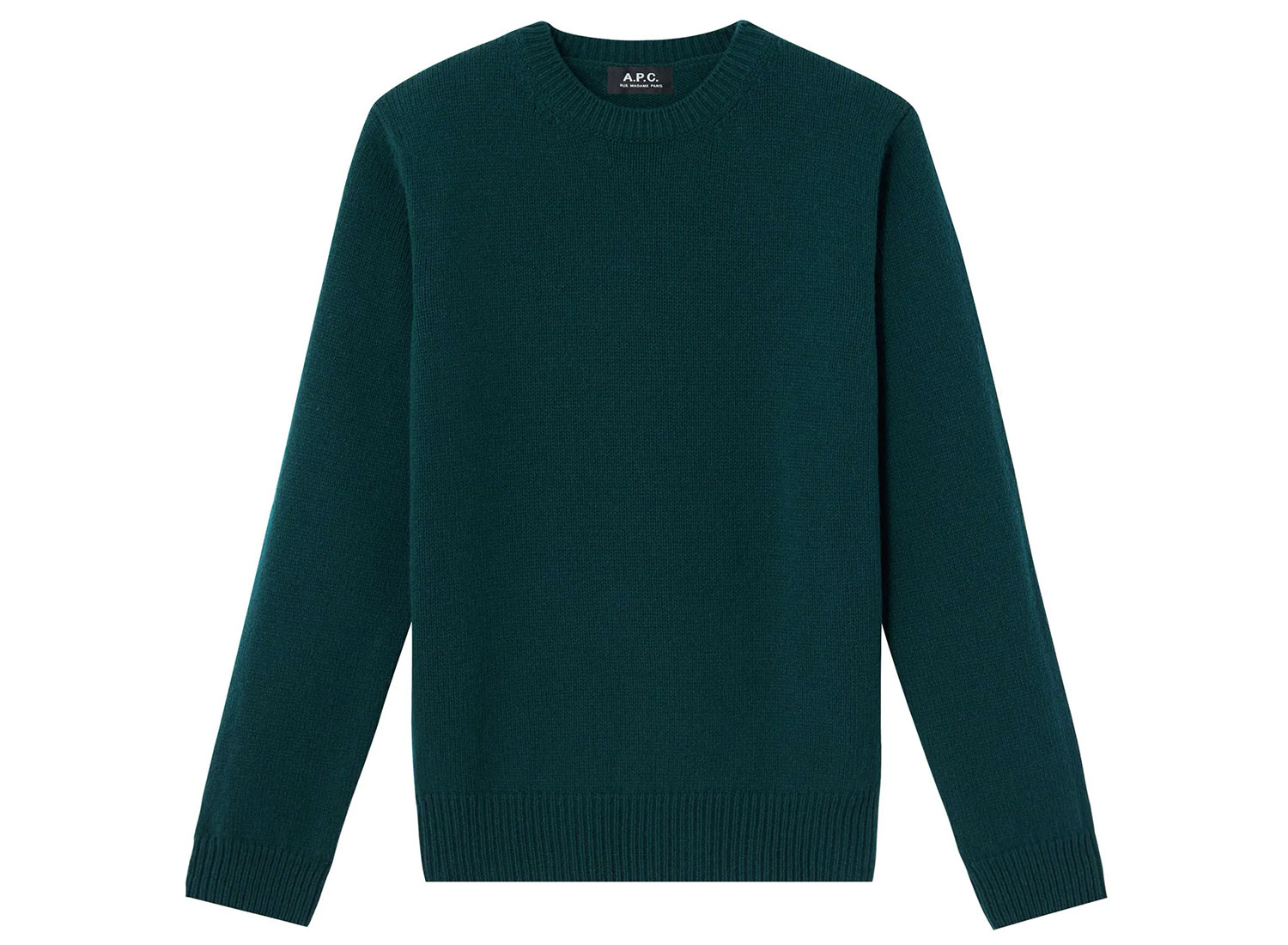APC Pull Craig Vert Sapin. Pull col rond confectionné en maille mérinos cachemire. Filature et fabrication italiennes. Matière chaude et duveteuse. Point jersey. Tricoté en un bout. Point jersey. Forme droite. Encolure arrondie à bord-côte. Manches montées. Bas des manches et du pull resserrés par des bords-côtes. 92% laine mérinos / 8% cachemire.