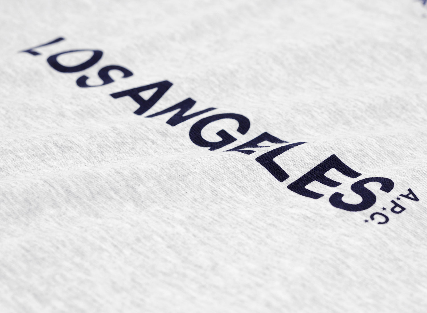 APC T-Shirt Los Angeles Gris. T-Shirt col rond confectionné en jersey de coton. Coupe relax. Impression sur la poitrine. Fabriqué en Californie.