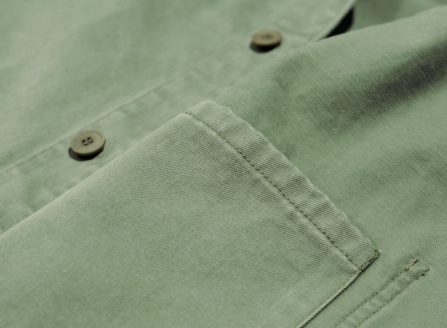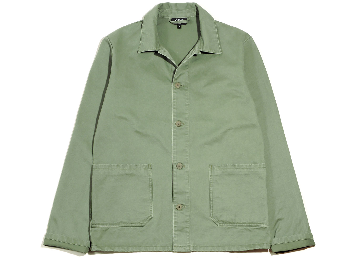 APC Veste Kerlouan Kaky. Veste type workwear confectionnée en gabardine de coton stonée. Matière légèrement stretch pour plus de confort. Coupe droite. Col classique. Fermeture boutonnée. Cinq boutons et contreboutons. Poches plaquées à doubles surpiqûres. Petite poche intérieure plaquée. Coutures anglaises. Longueur hanches. Boutons corozo.