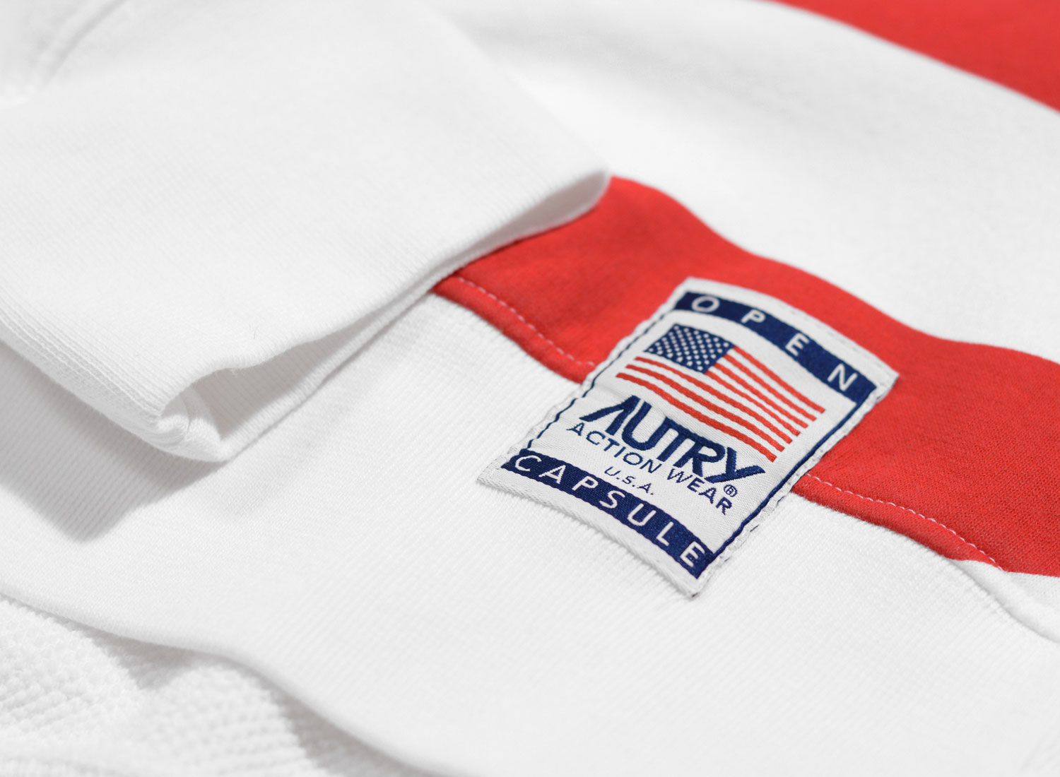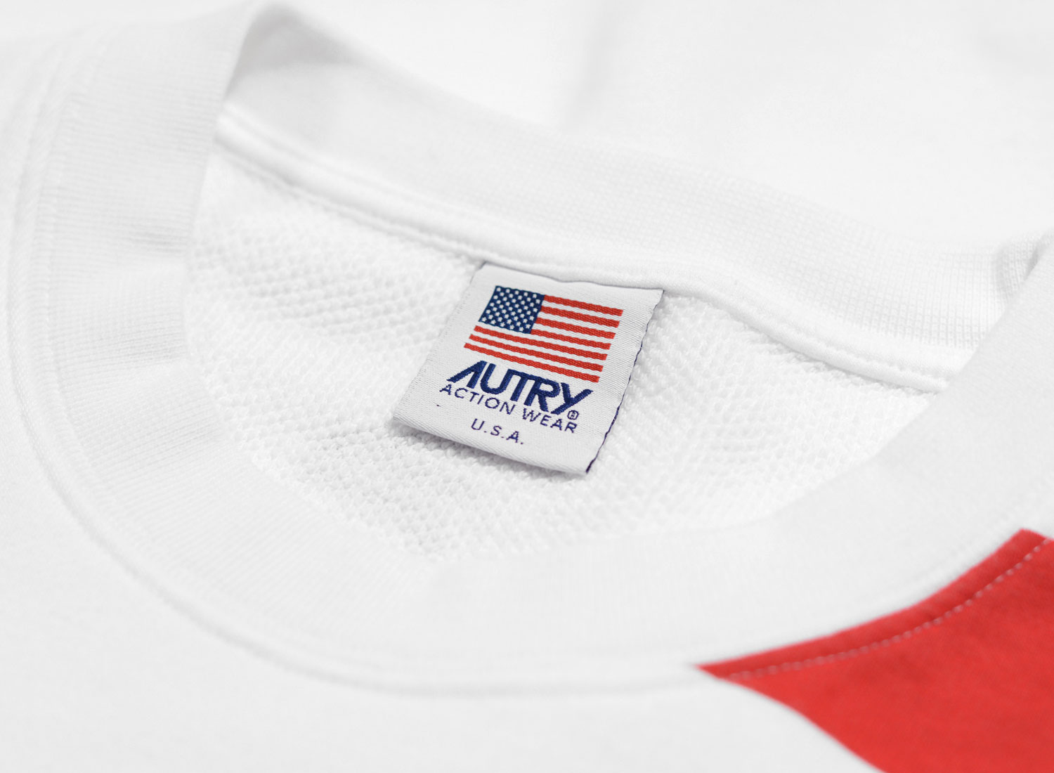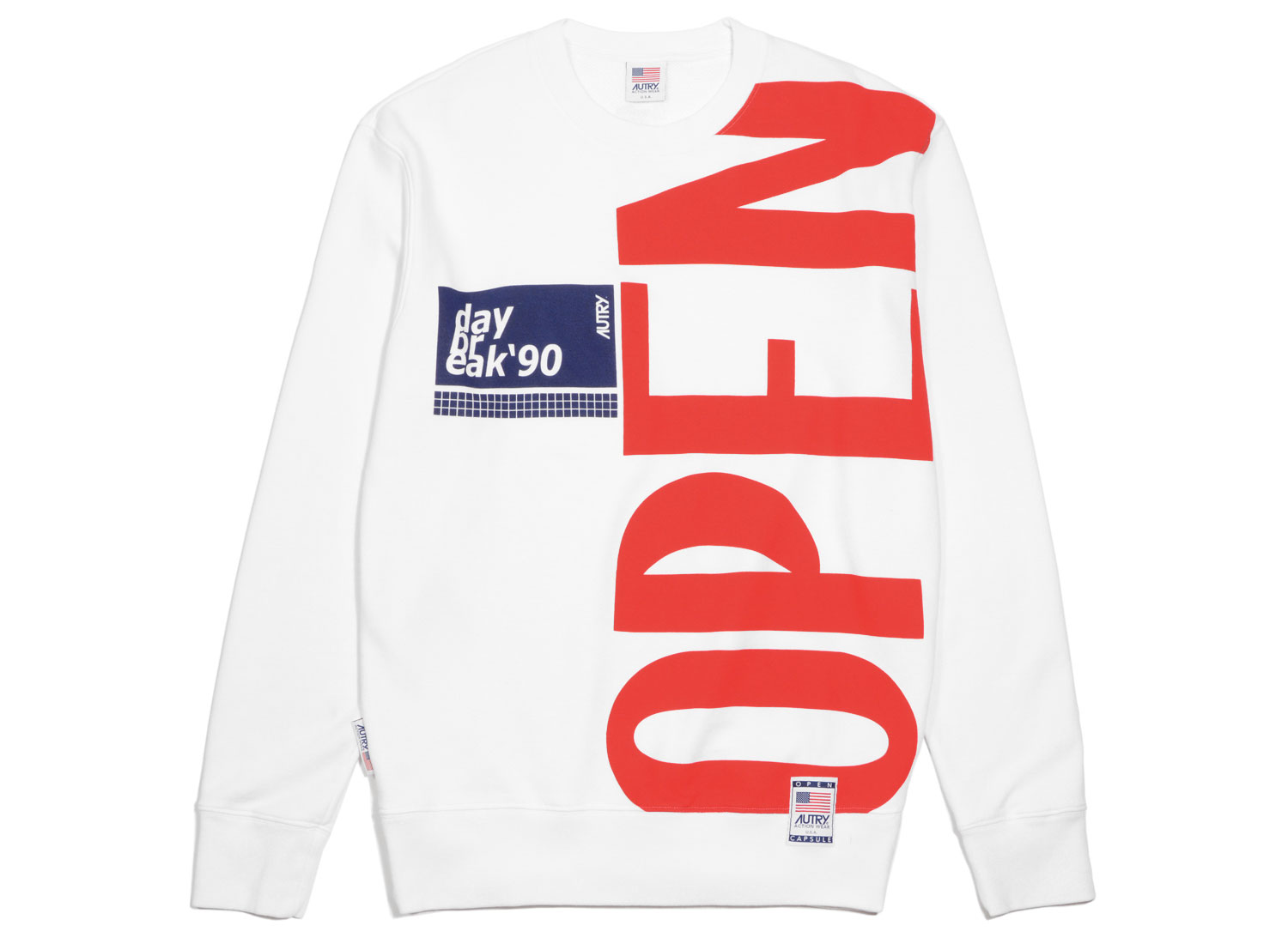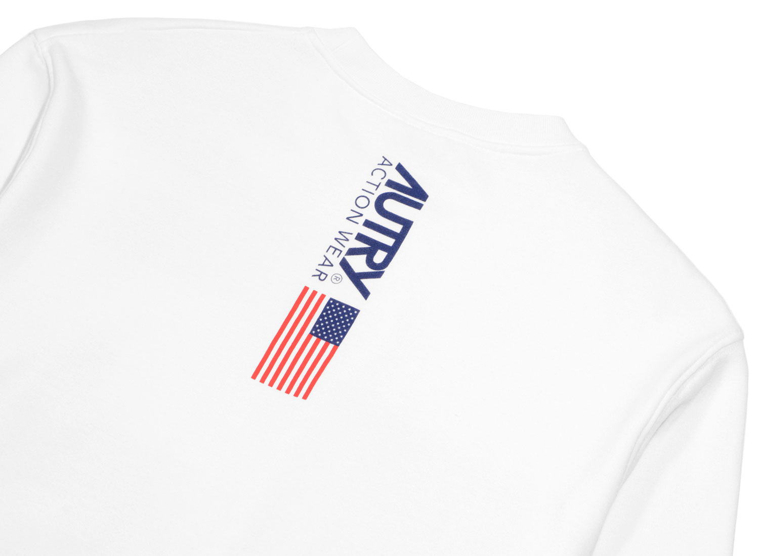 AUTRY A10M Sweat White. Sweat shirt col rond fabriqué en Italie pour cette capsule en série très limitée. Coupe régular confectionné dans un magnifique jersey 95% coton et 5% polyamide envers nid d'abeille. Visuel poitrine sérigraphié, étiquette Autry cousue dans la couture du côté et étiquette Capsule Autry cousue à plat sur le bas du sweat shirt. Logo dos sérigraphié. Bord côte col, bas et poignets.