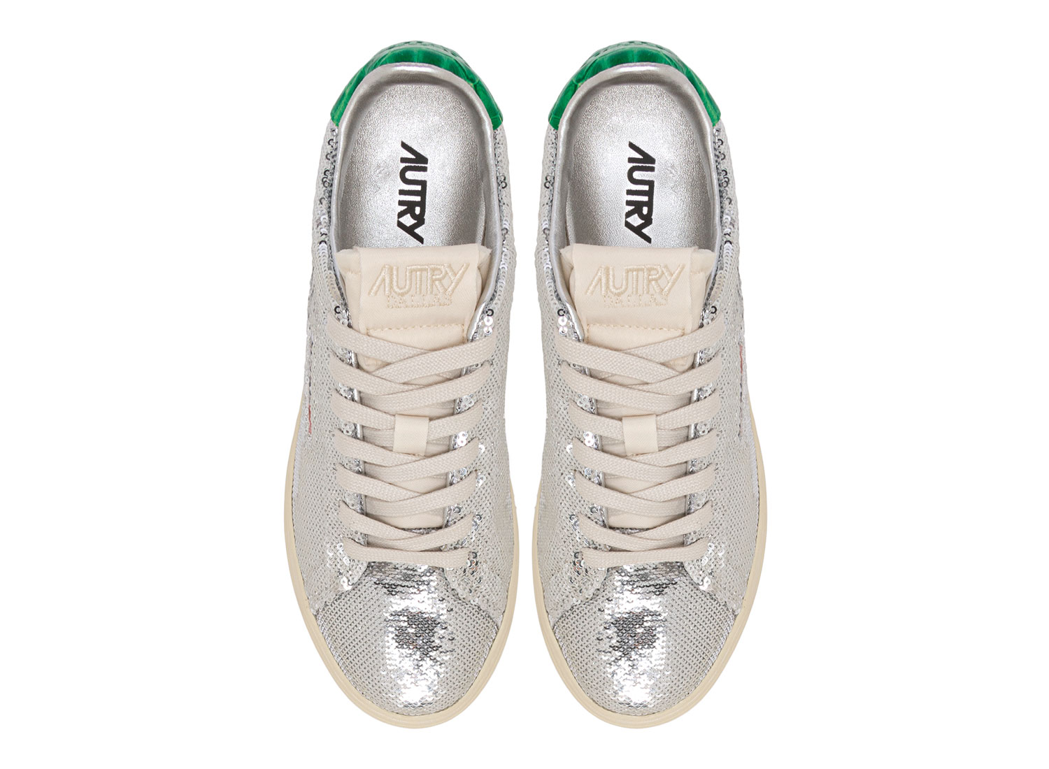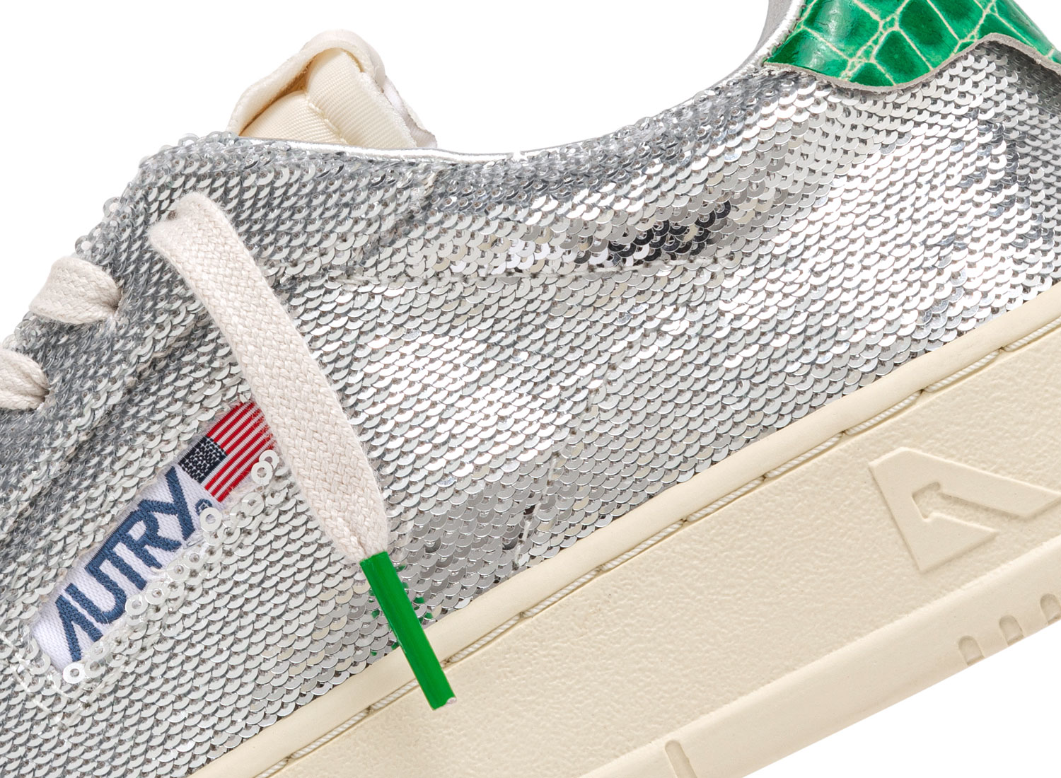 AUTRY Dallas Low ADLW TI01 Wom Paillet / Silver / Green. "SAY IT WITH FLOWERS" CAPSULE COLLECTION. Réédition de la tennis DALLAS dans un version très limitée. Empeigne en sequin et arrière contrasté.