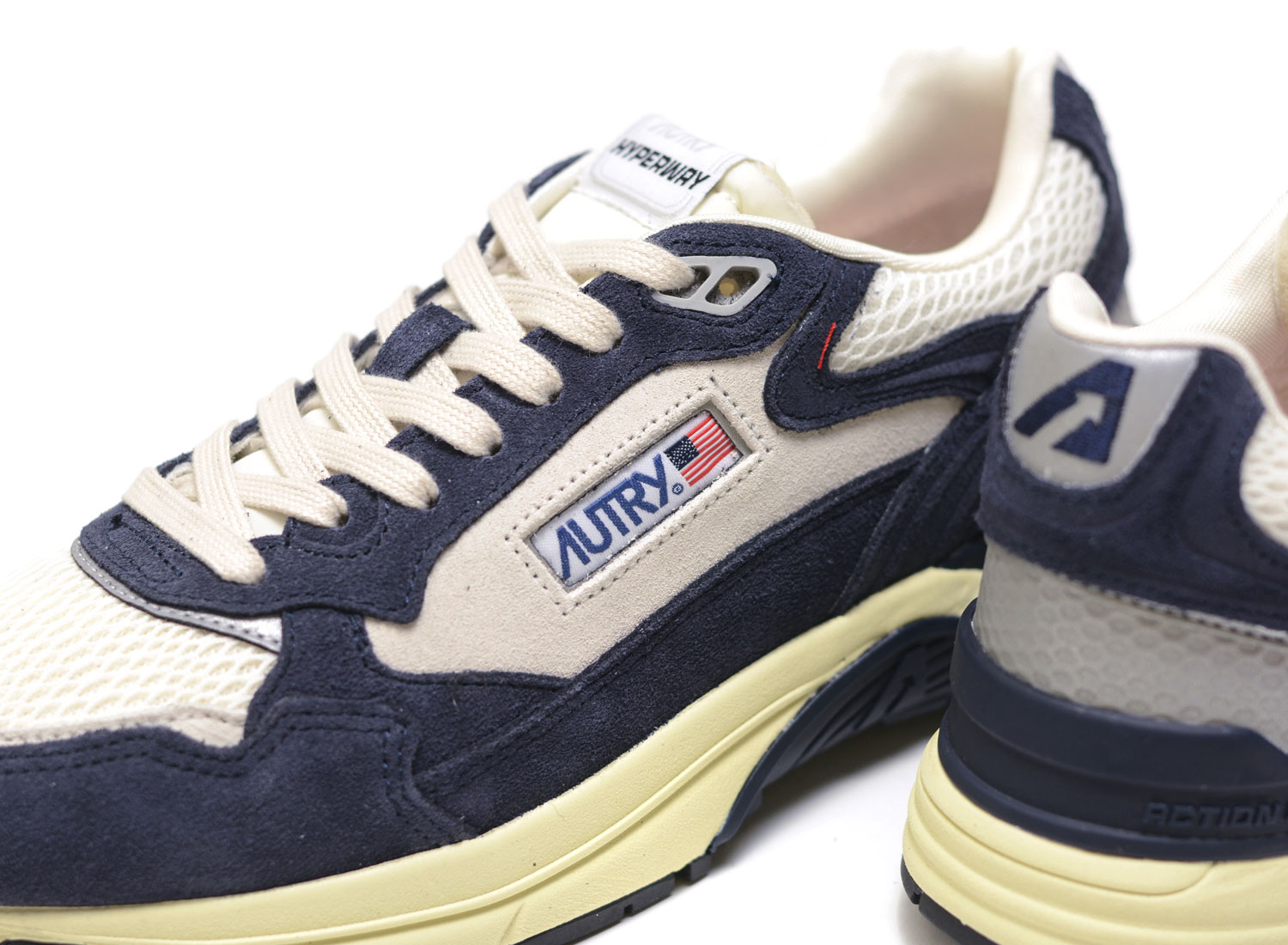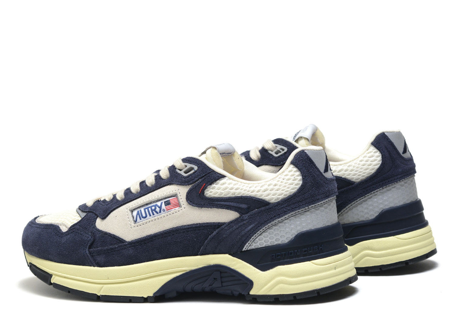 AUTRY Hyperway Low SA02 Suede / Mesh Blue / Silver. Look moderne. Empeigne en daim premium et mesh Technology Action Cush pour un maximum de confort. Pointe en mesh Lacets plats en coton. Etiquette en jacquard avec logo Col rembourré en mesh. Doublure en coton-éponge. Semelle doublé en tissu mesh surélévée de 1,5 mm. Semelle en PI.
