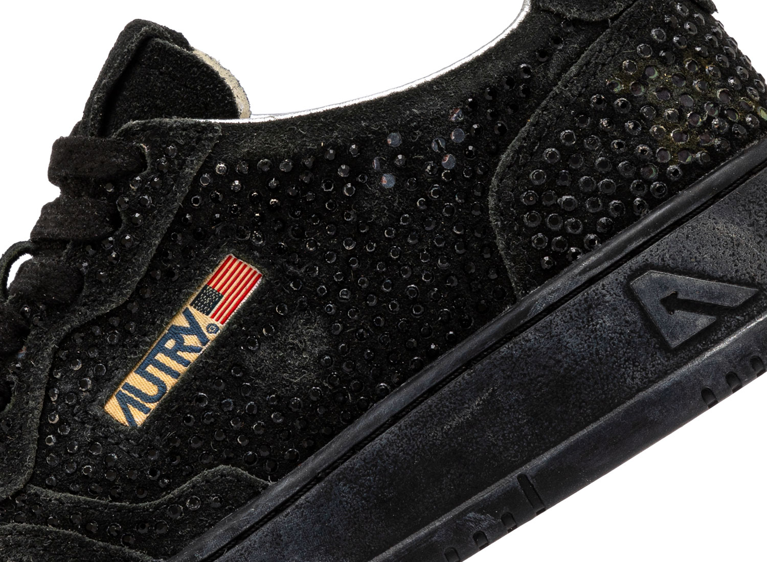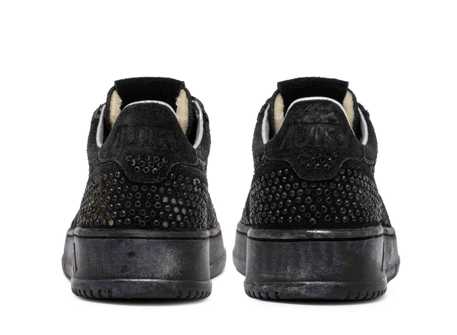 AUTRY Medalist Low AULWNA02 Wom / Suede Strass Black. "SAY IT WITH FLOWERS" CAPSULE COLLECTION. Réédition de la tennis historique 01 dans une version très limitée. Empeigne en suede premium et cristaux all over. Traitement super vintage avec un travail unique sur chaque paire. Ultra confortable.