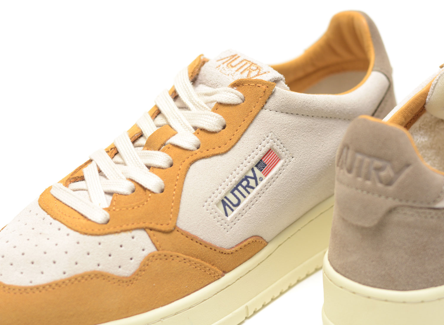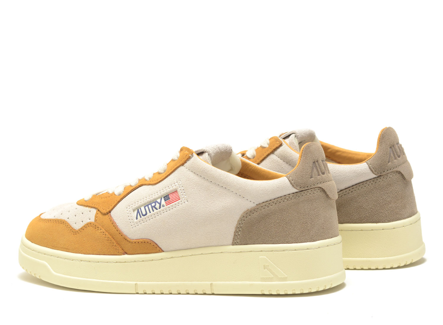 AUTRY Medalist Low TS24 Tricolor Suede Brnmus / Ant. Empeigne en suede premium. Talon cuir. Semelle et lacets vanille pour un look vintage. Ultra confortable.
