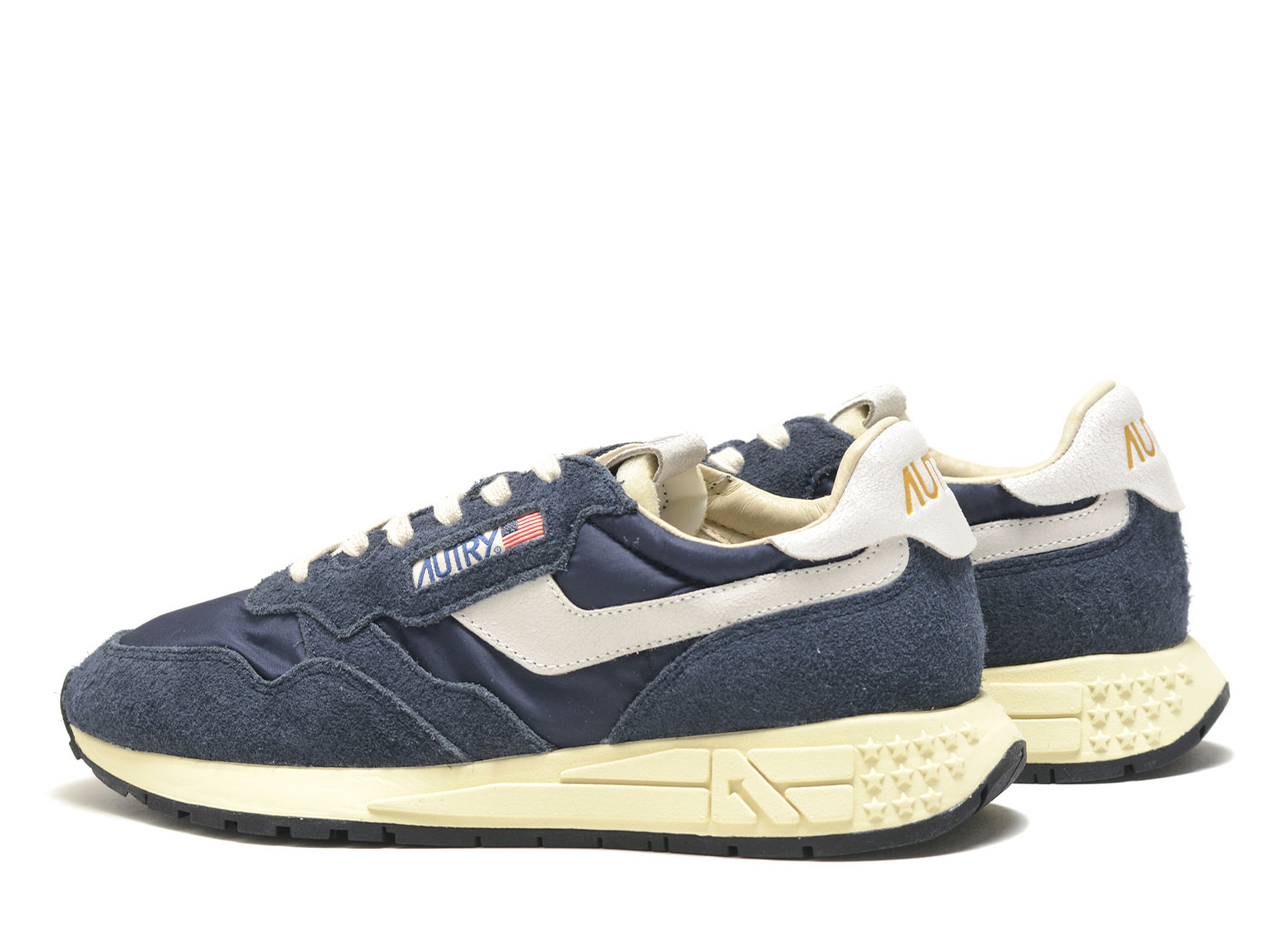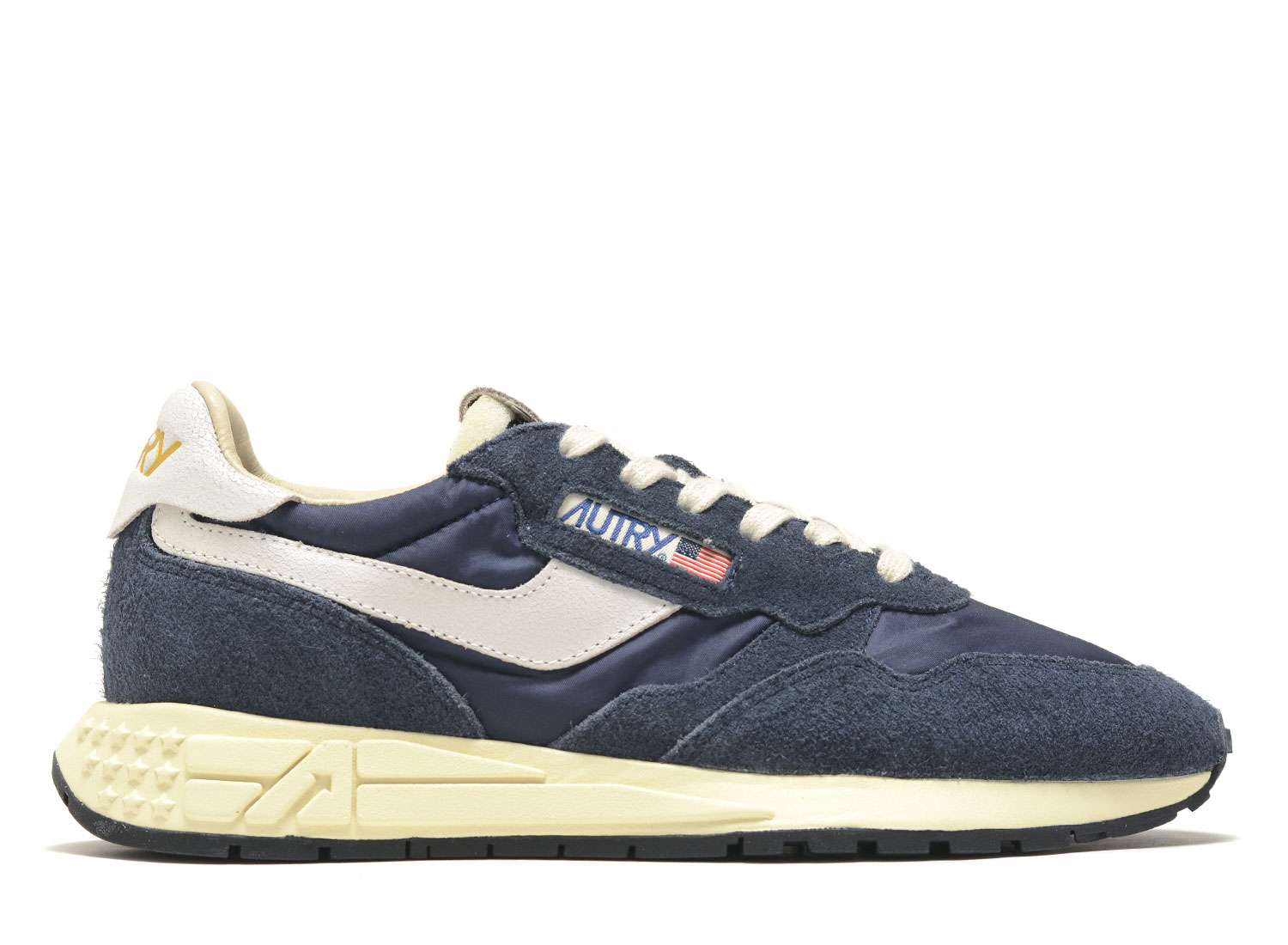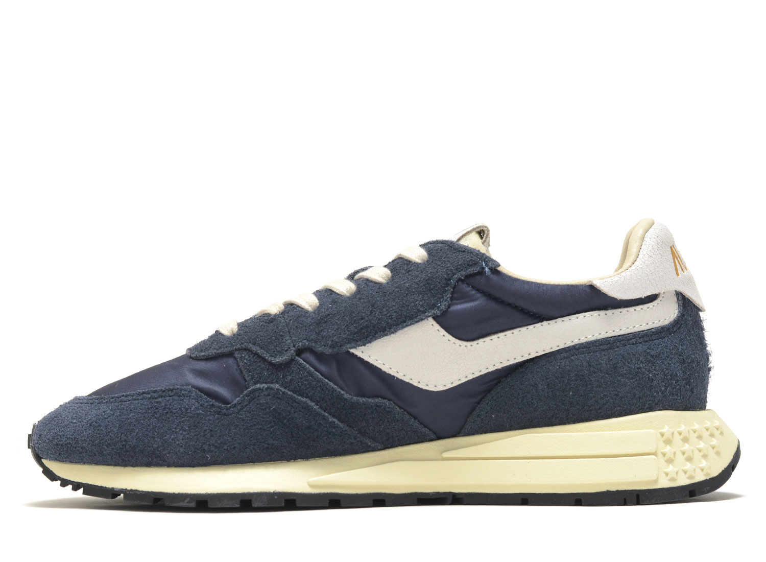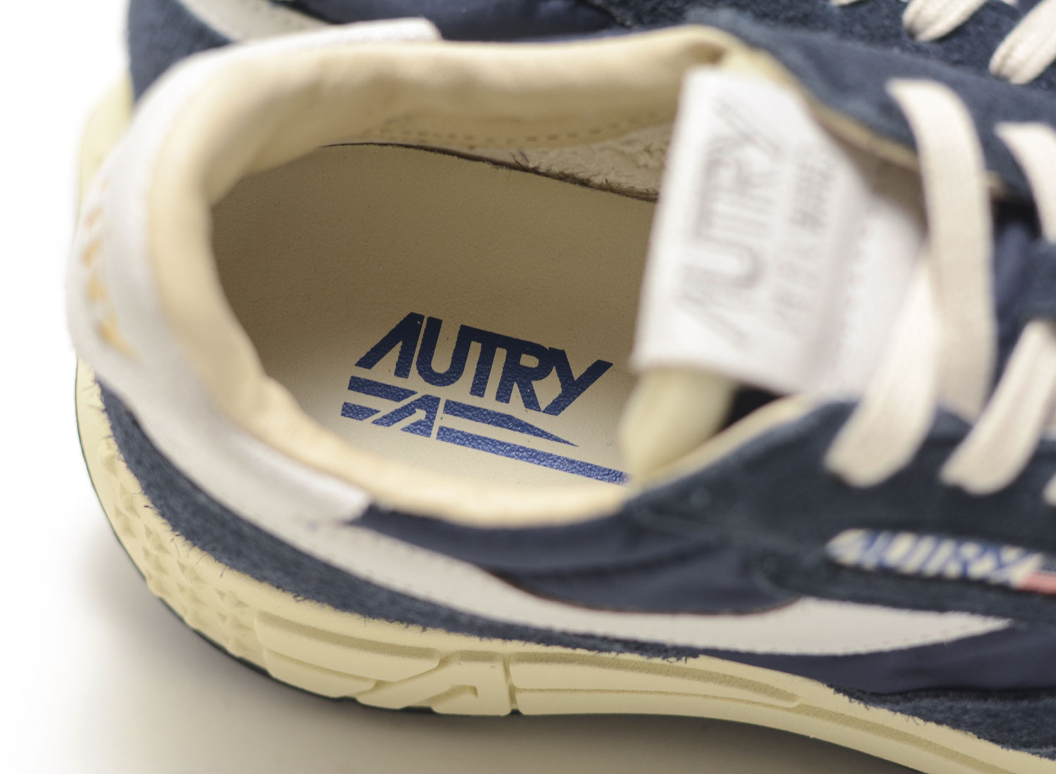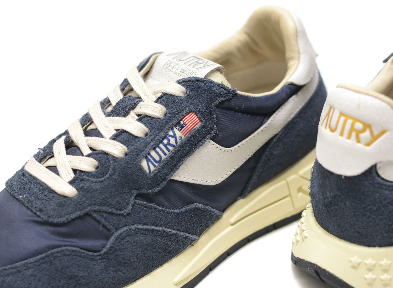 AUTRY Reelwind Low NC30 Nylon / Crack White / Space. Empeigne en cuir suédé premium et nylon pour un look très retro. Empiecements en cuir craquelé pour renforcer le coté vintage sur le coté et à l'arrière. Semelle et lacets vanille. Ultra confortable.