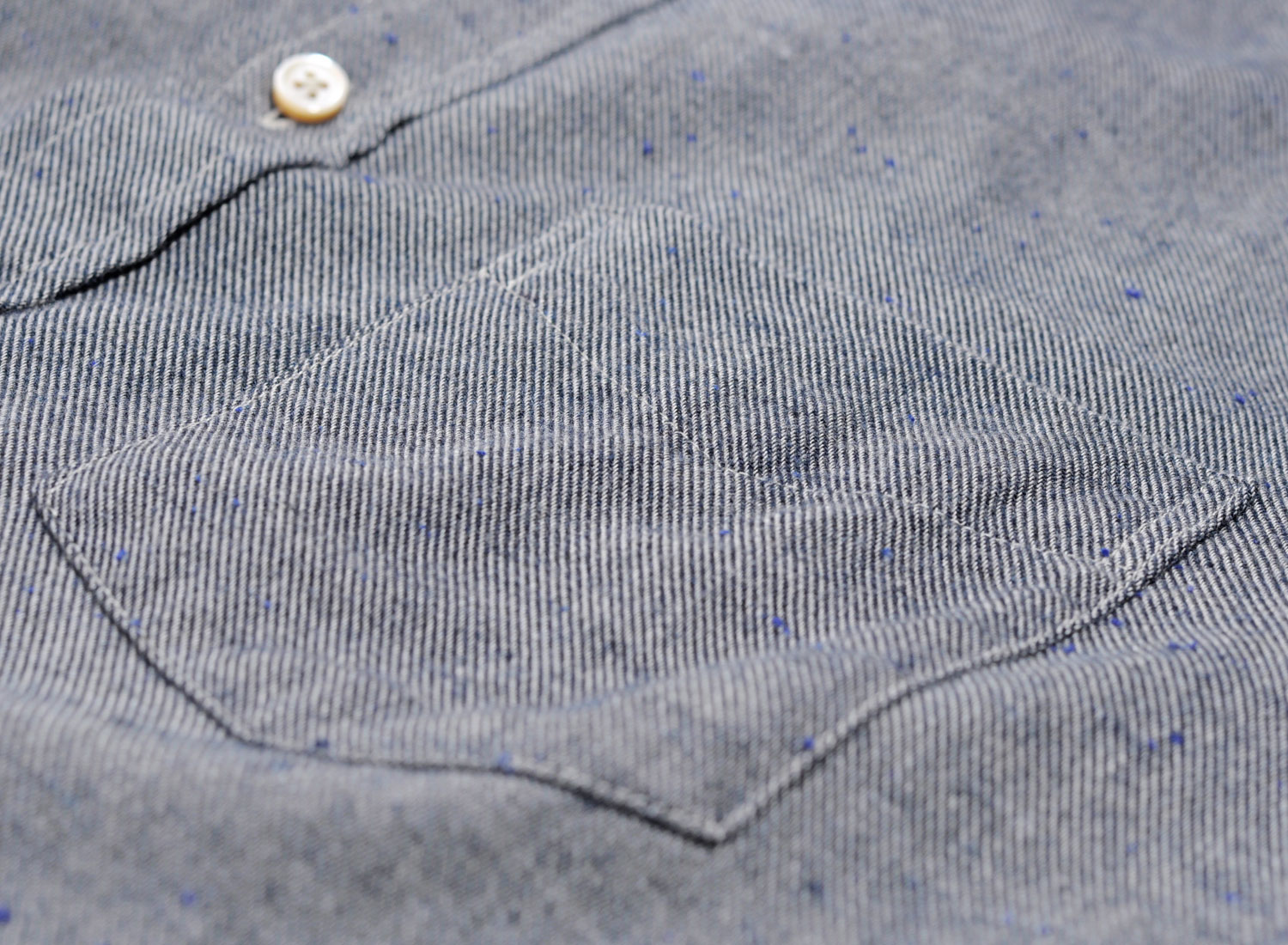 BELLEROSE Galt 72 Shirt Blue. Jolie chemise coupe droite confectionnée dans une flanelle chinée très douce. 49% coton / 29% acrylique / 21% modal / 1% polyester. Coupe regular. Col et poignets boutonnés. Poche poitrine. Découpe arrondie sur le bas.