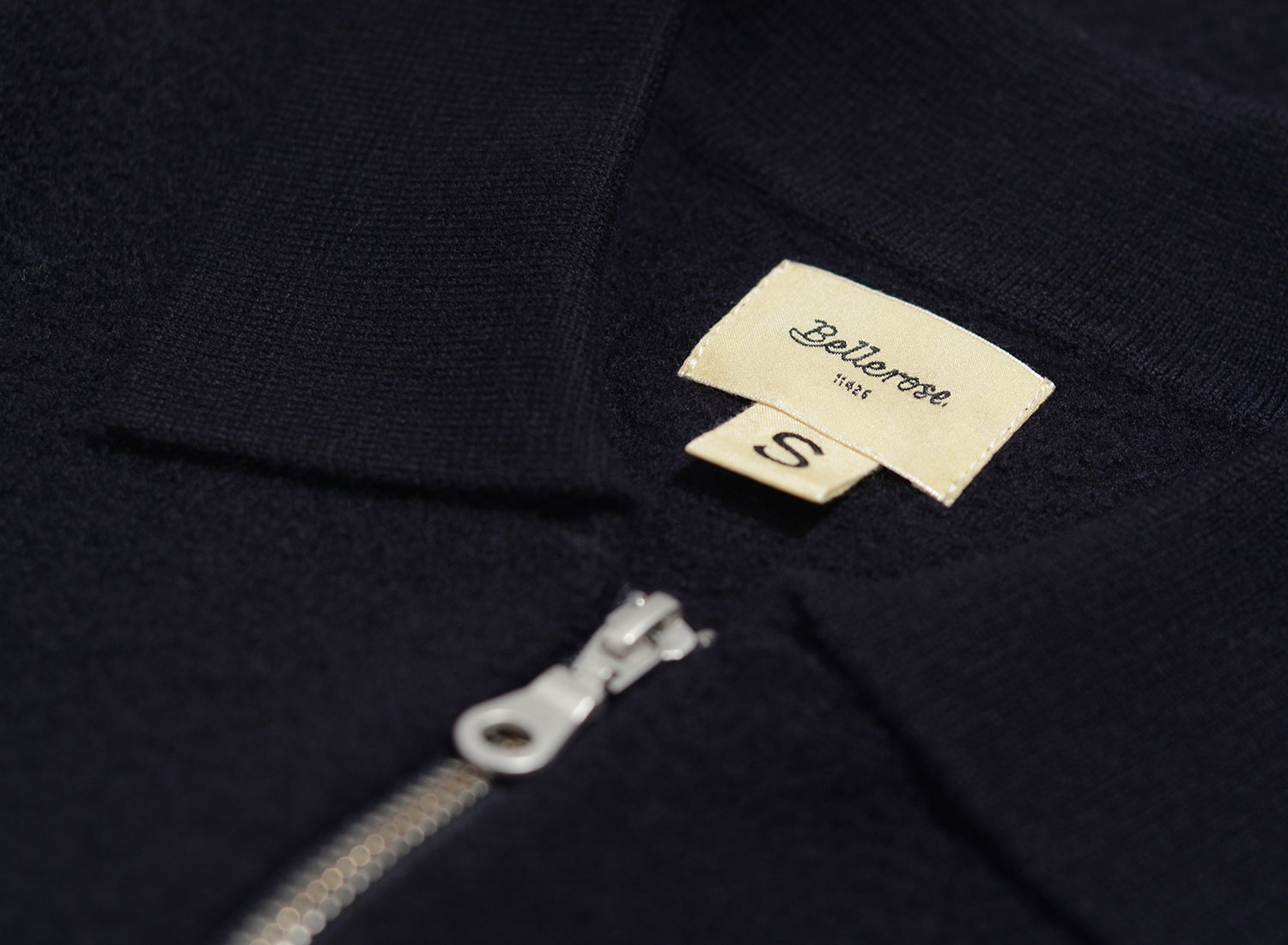 BELLEROSE Goiol Cardigan Navy. Très beau gilet zippée confectionné en maille bouillie 100% laine. Coupe droite. Fermeture zippée. Bords-côtes au col, aux poignets et sur le bas.
