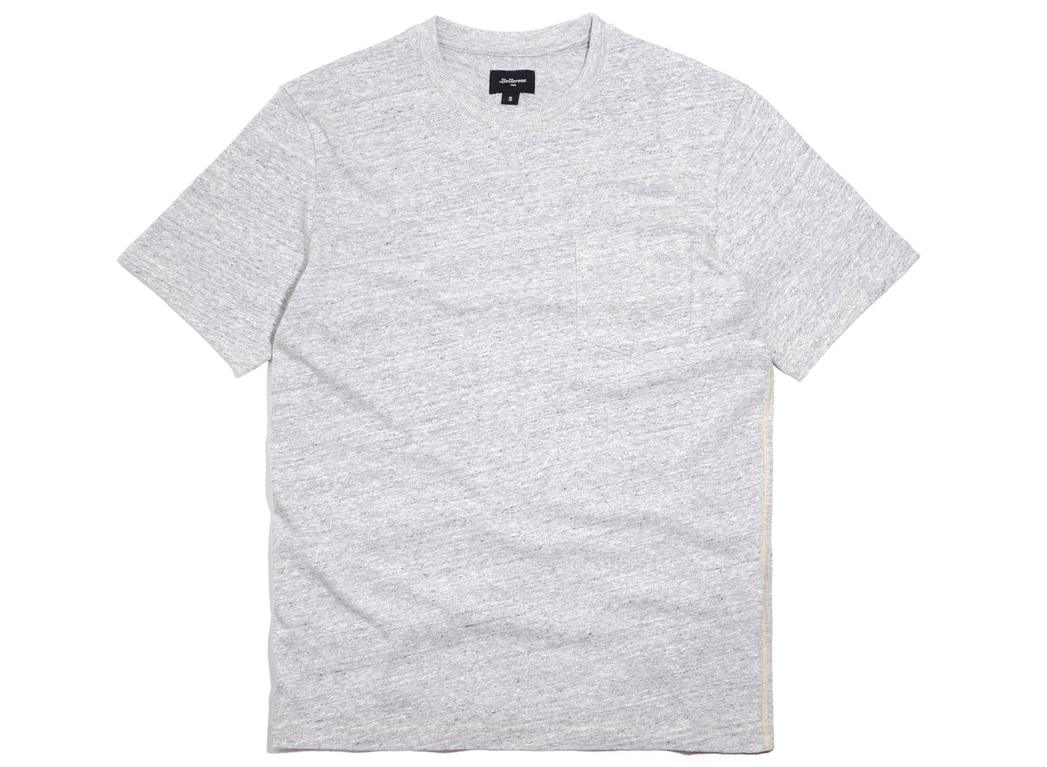 BELLEROSE Mexo T-shirt Heather Grey. T-shirt manches courtes en jersey de coton flammé épais. Coupe relax. Col rond. Poche poitrine. Coutures côtés contrastées.