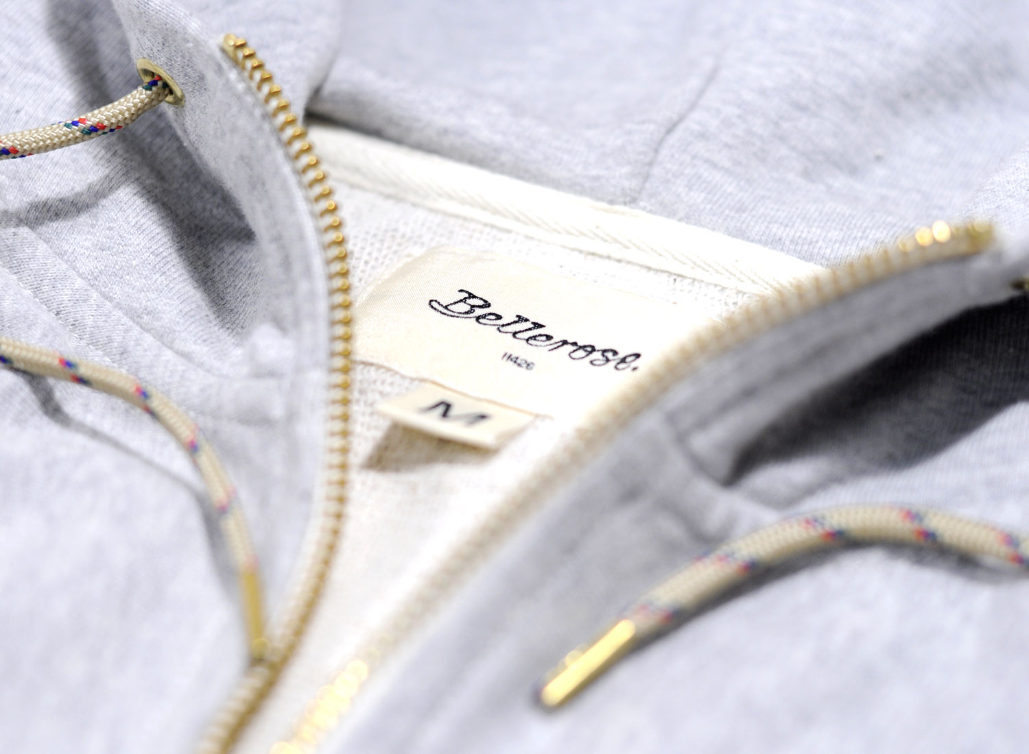 BELLEROSE Vaduk Sweatshirt Grey. Sweatshirt zippé à capuche confectionné en molleton de coton. Coupe droite un peu ample. Cordon de serrage contrasté sur la capuche. Poche kangourou sur l'avant. Bords-côtes aux poignets et sur le bas.