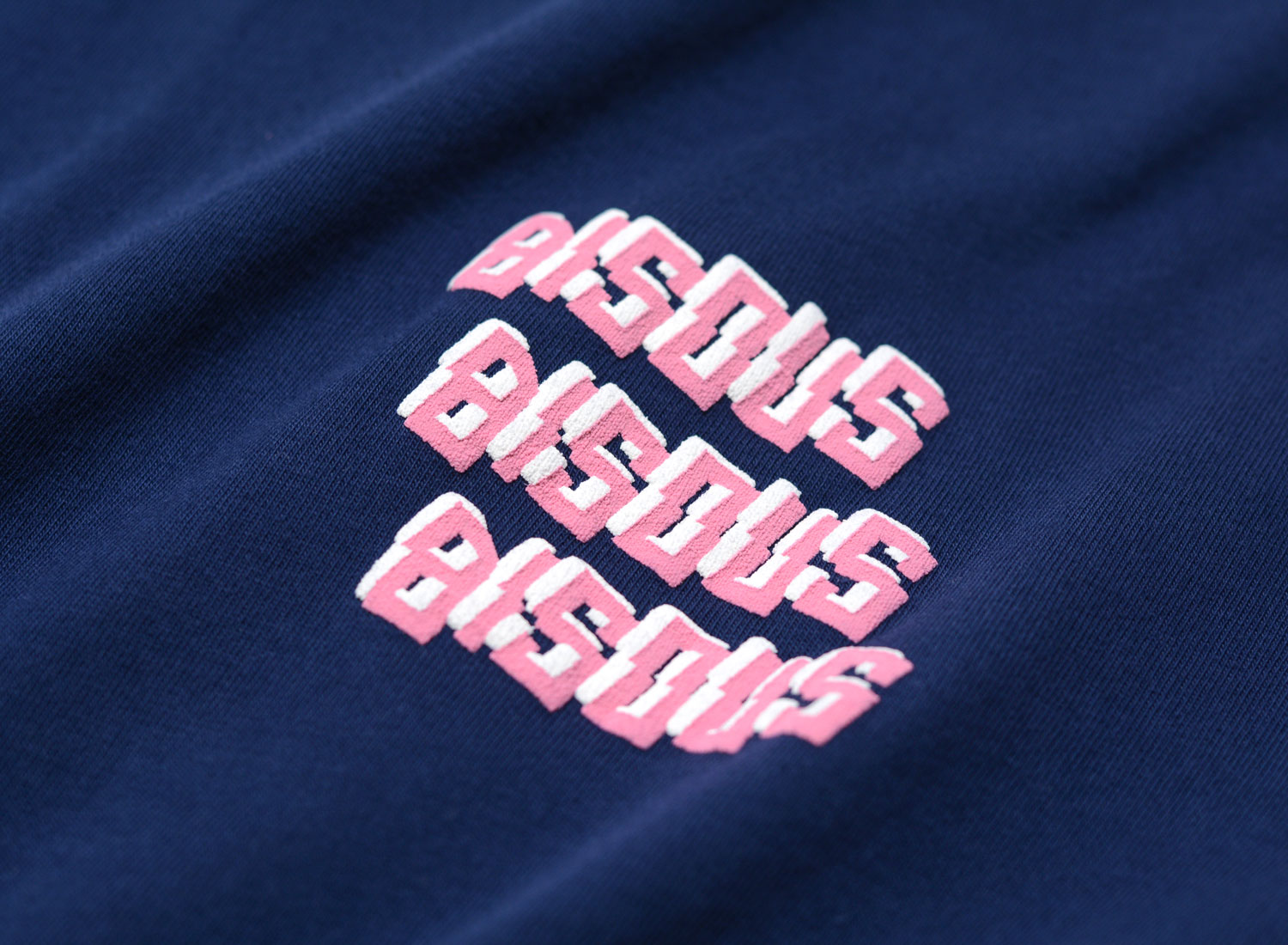 BISOUS SKATEBOARDS Bisous X3 Tshirt Navy. T-shirt col rond confectionné en coton jersey. Coupe droite. Impression à l'encre gonflante sur la poitrine.