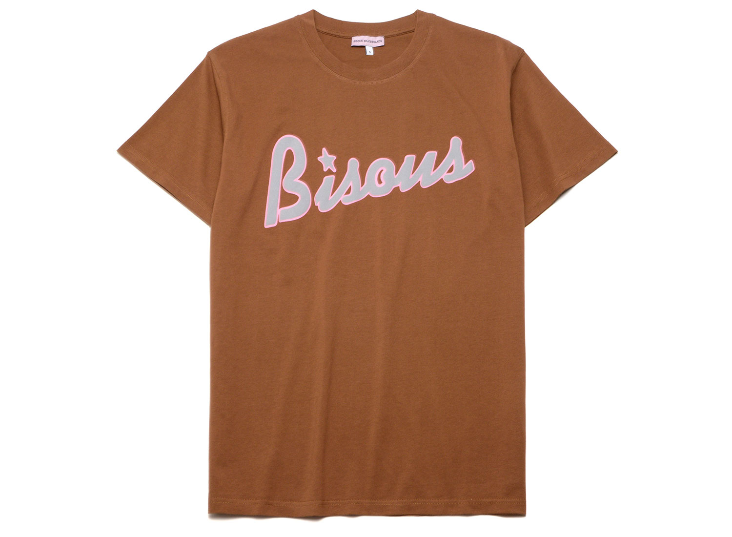 BISOUS SKATEBOARDS Lounge Tshirt Brown. T-shirt col rond confectionné en coton jersey. Coupe regular. Bord-côte au col. Impression à l'encre gonflante sur la poitrine.