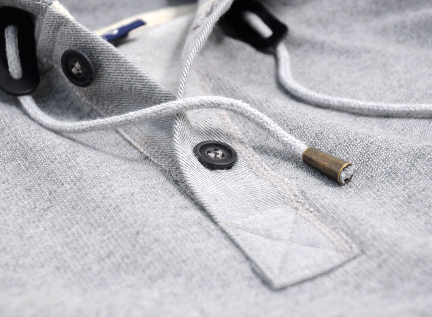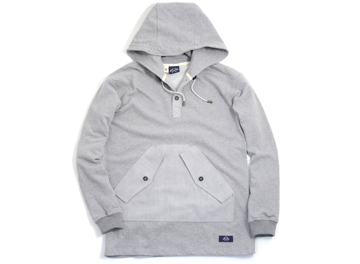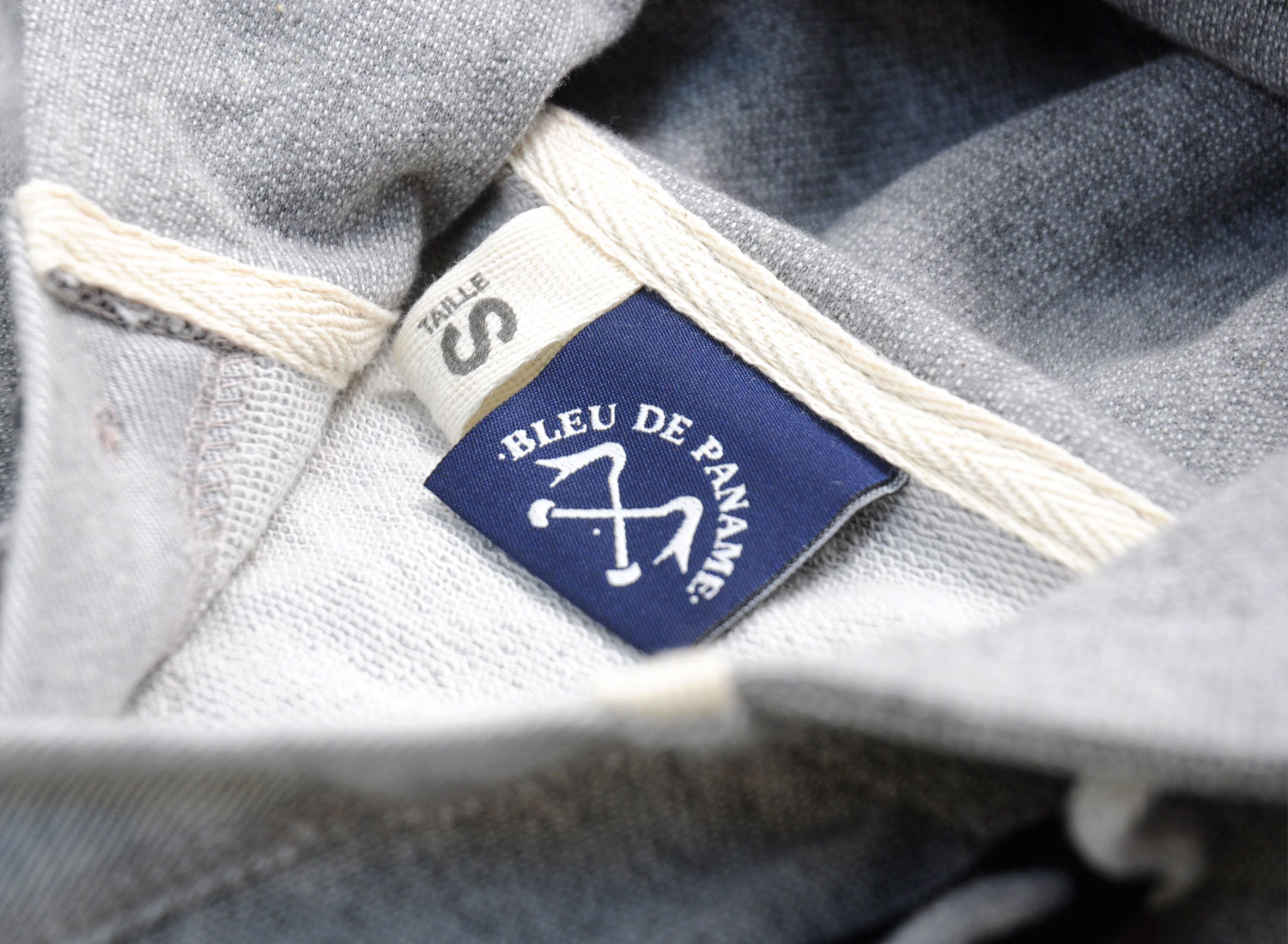 BLEU DE PANAME Printemps / Eté 2016. Très beau sweat à capuche en molleton léger 100% coton. Boutonnière et poche en denim chambray. Bords-côtes aux poignets et sur le bas. Fabrication Française !