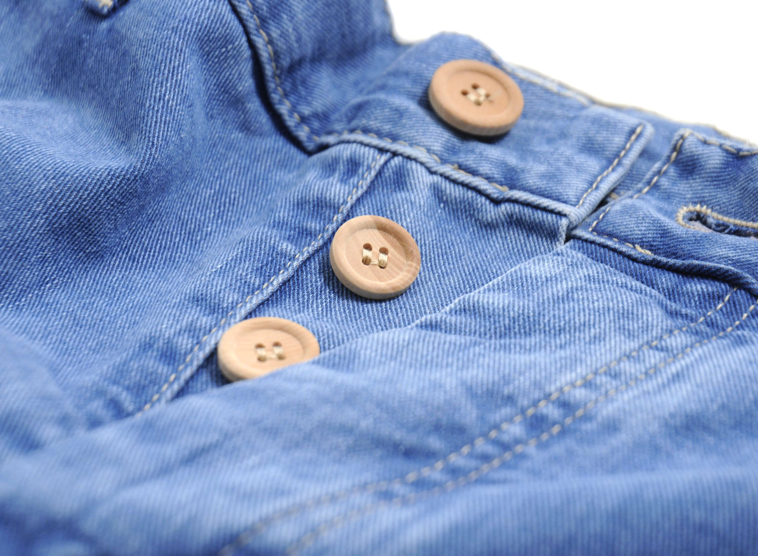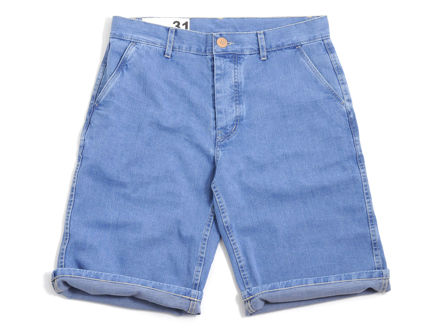 BLEU DE PANAME Printemps / Eté 2016. Short Civile en denim léger 100% coton. Coloris "Bleu Charrette". Deux poches côtés et deux poches passepoilées boutonnées sur l'arrière. Braguette boutonnée. Boutons bois. Très confortable. Fabriqué en France.