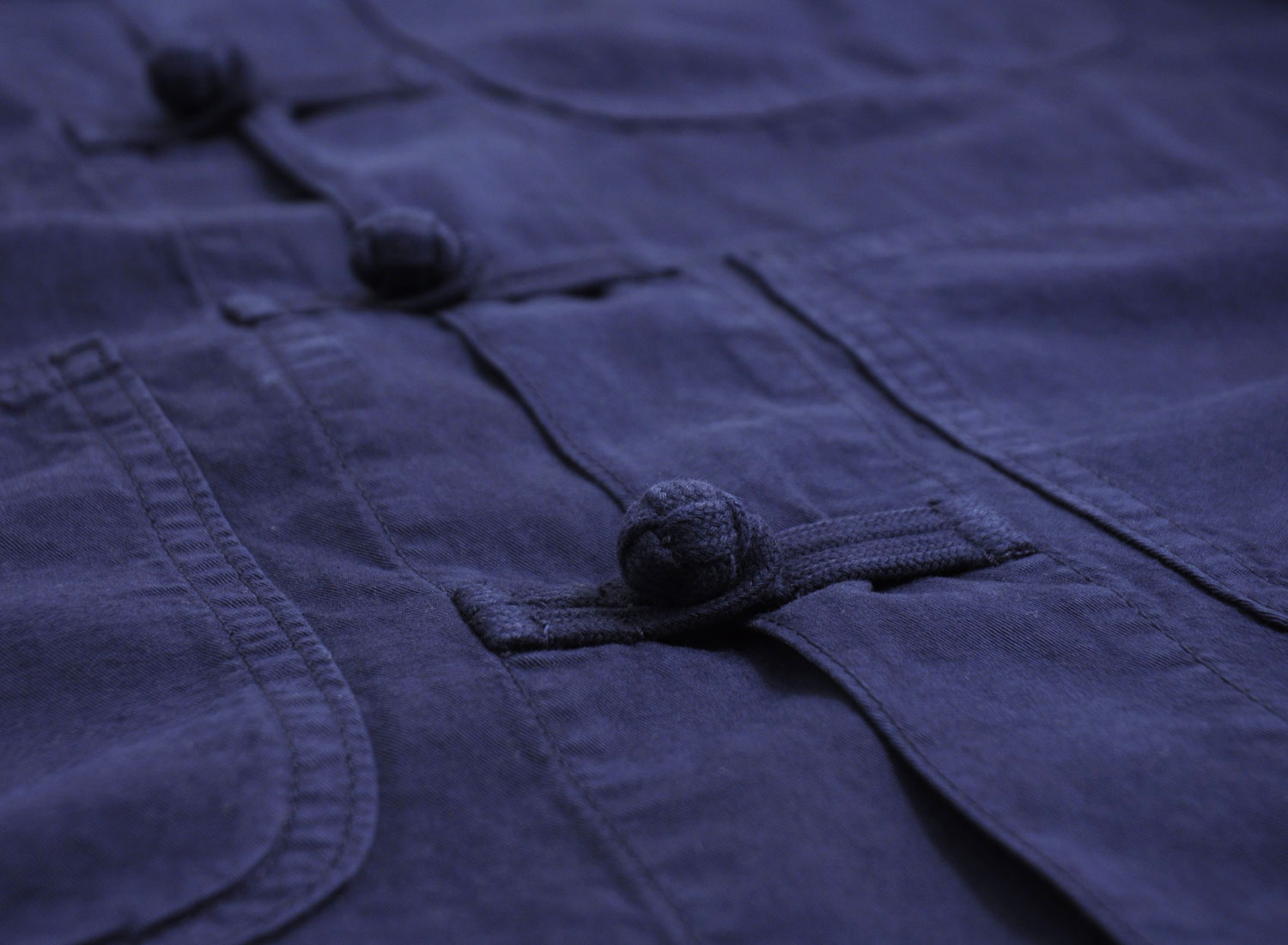 BLEU DE PANAME Printemps / Eté 2016. Très belle veste Kung Fu d'inspiration Asiatique en twill léger 100% coton. Coupe droite. Trois poches sur l'avant. Une poche intérieur. Fabriqué en France.