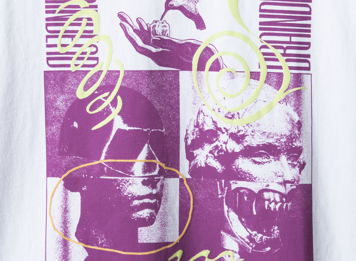 BRAIN DEAD Drop 8. Background Noise Tee White. T-shirt manches courtes en jersey de coton lavé. Coupe droite. Impression sur l'avant. Fabriqué aux USA.
