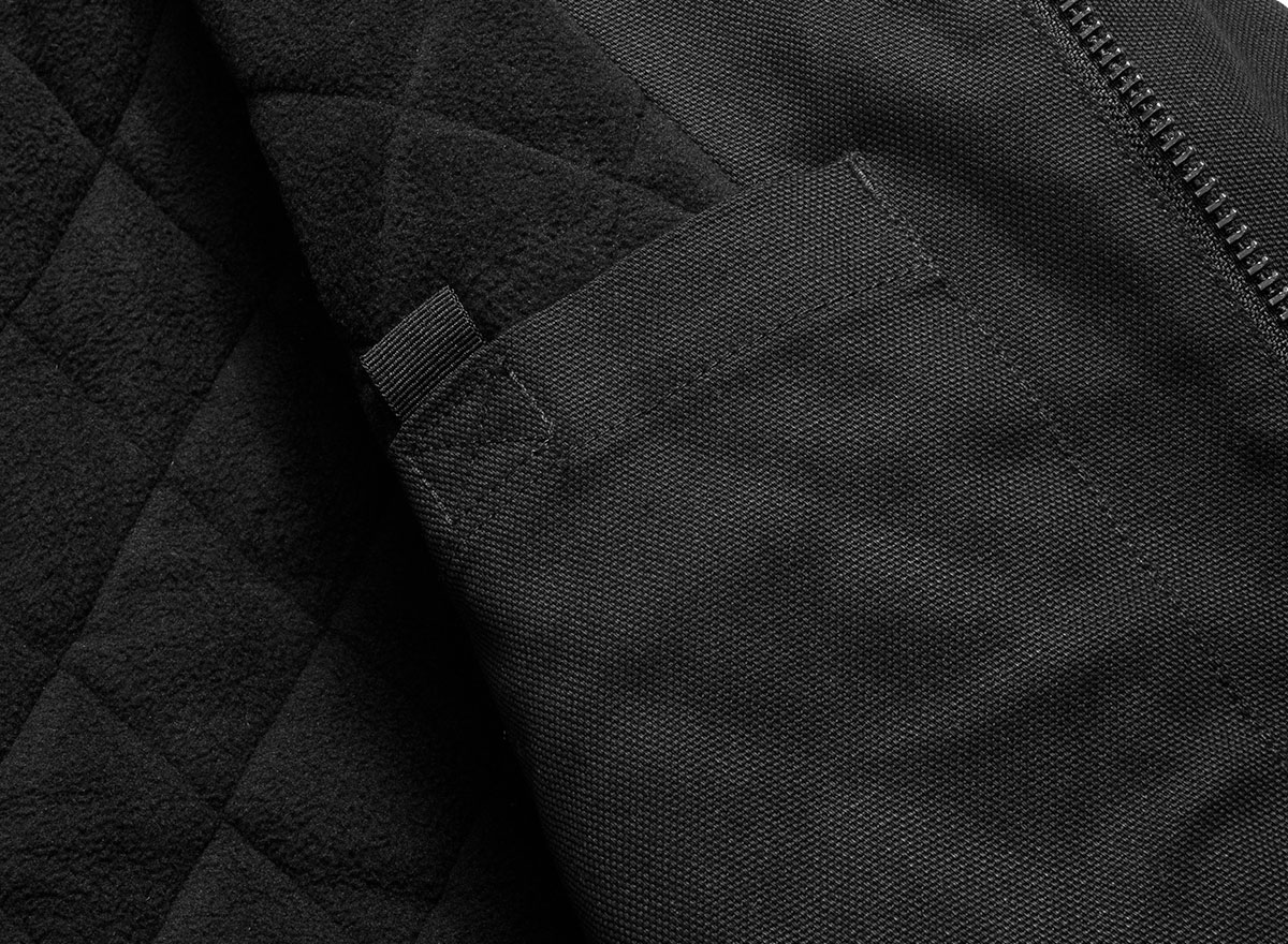 CARHARTT WIP Active Jacket Black. Très belle veste composée de coton canvas à 100%. Tissu hydrofuge. Doublure corps matelassée en micro-polaire. Doublure manches en taffetas de nylon. Doublure matelassée. Capuche ajustable. Poignets et bas côtelés. Poche kangourou. Etiquette carrée.