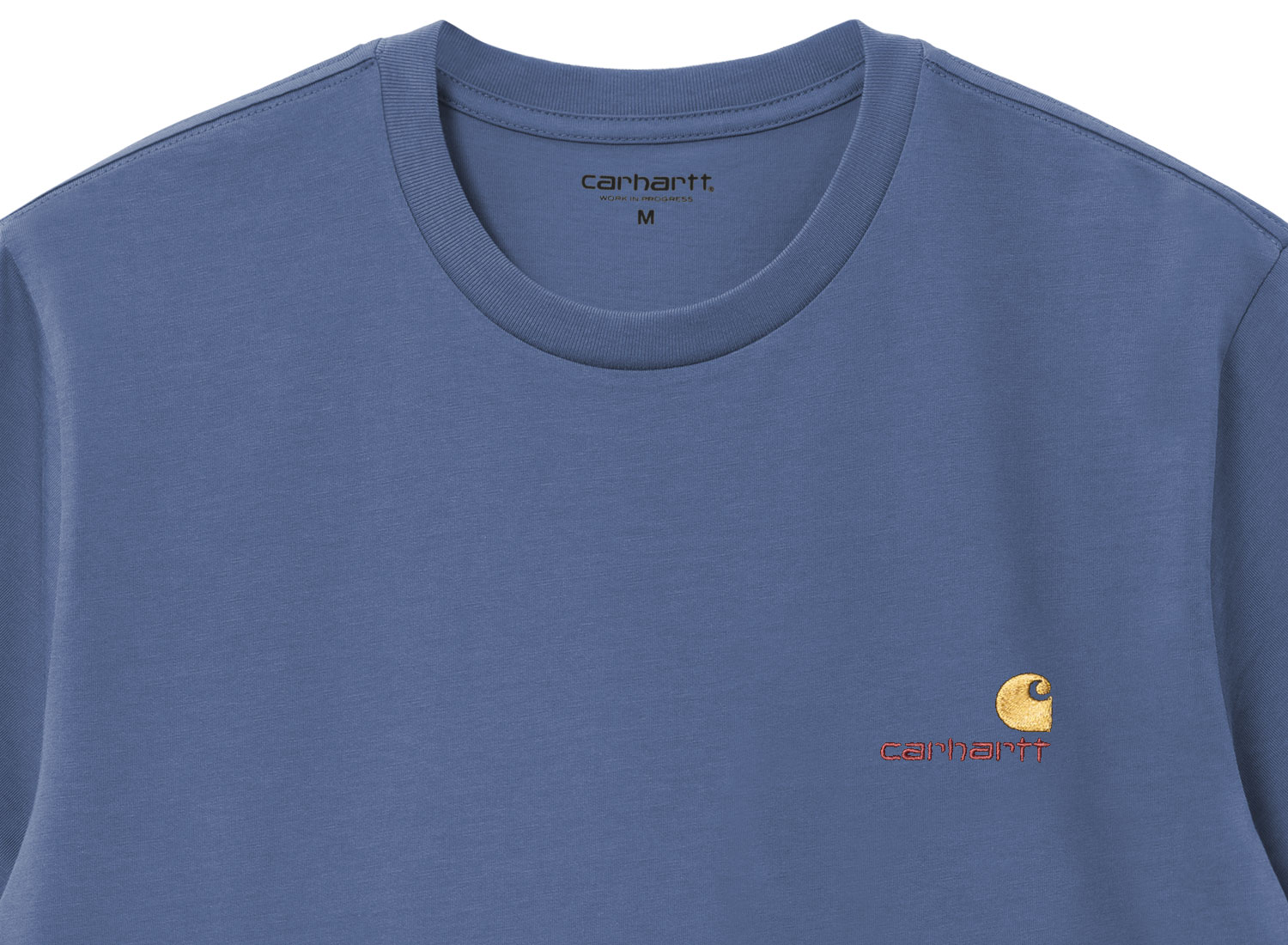 CARHARTT WIP American Script Tshirt Blue Iris I029950. T-shirt coupe relax confectionné dans un jersey de coton biologique 240g. Bord-côte au col. Broderie sur la poitrine.