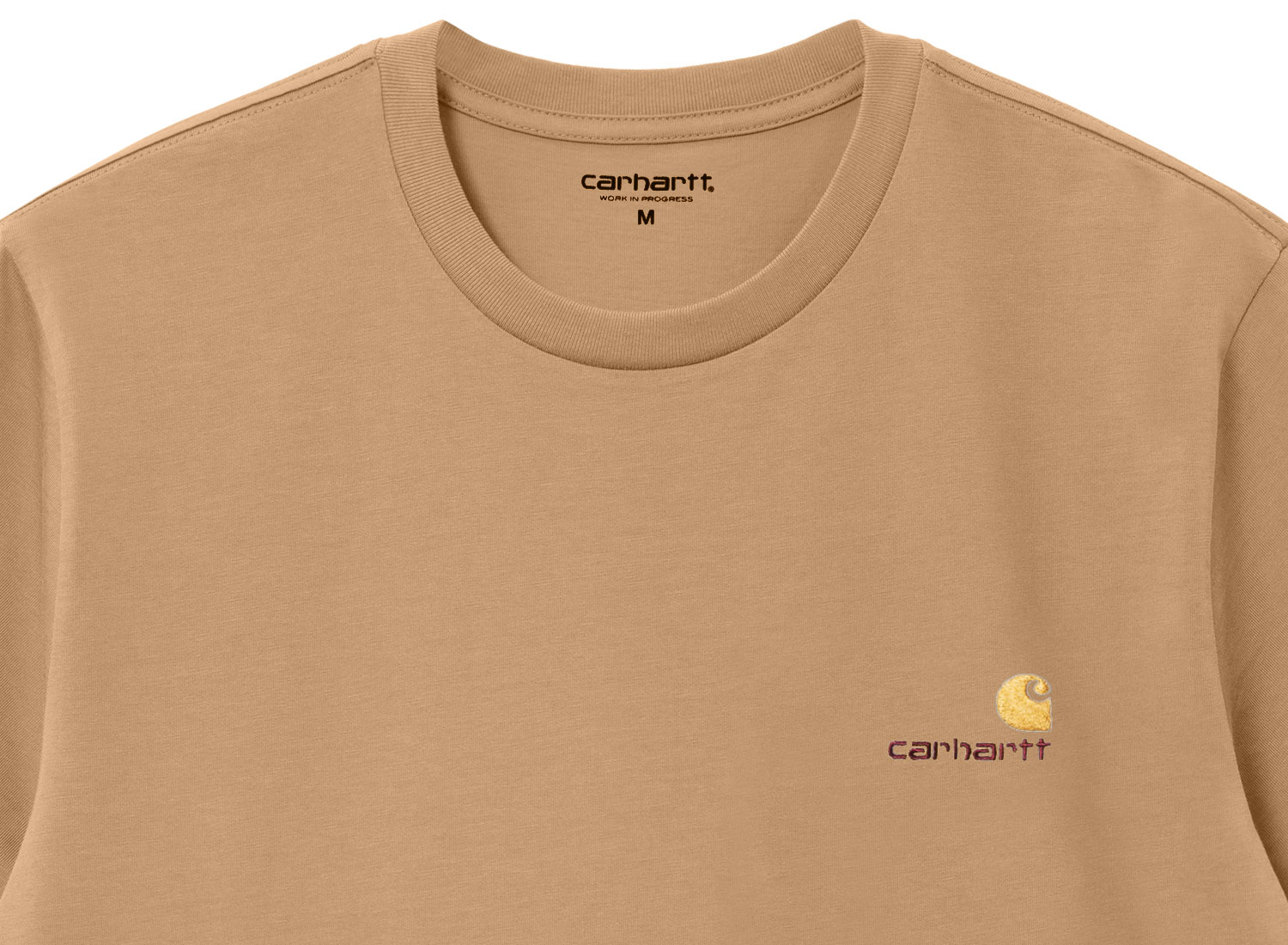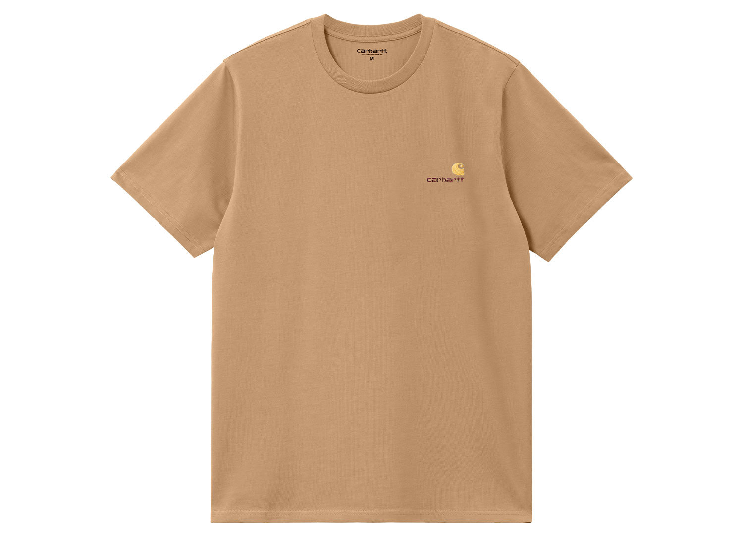 CARHARTT WIP American Script Tshirt Peanut I029956. T-shirt coupe relax confectionné dans un jersey de coton biologique 240g. Bord-côte au col. Broderie sur la poitrine.
