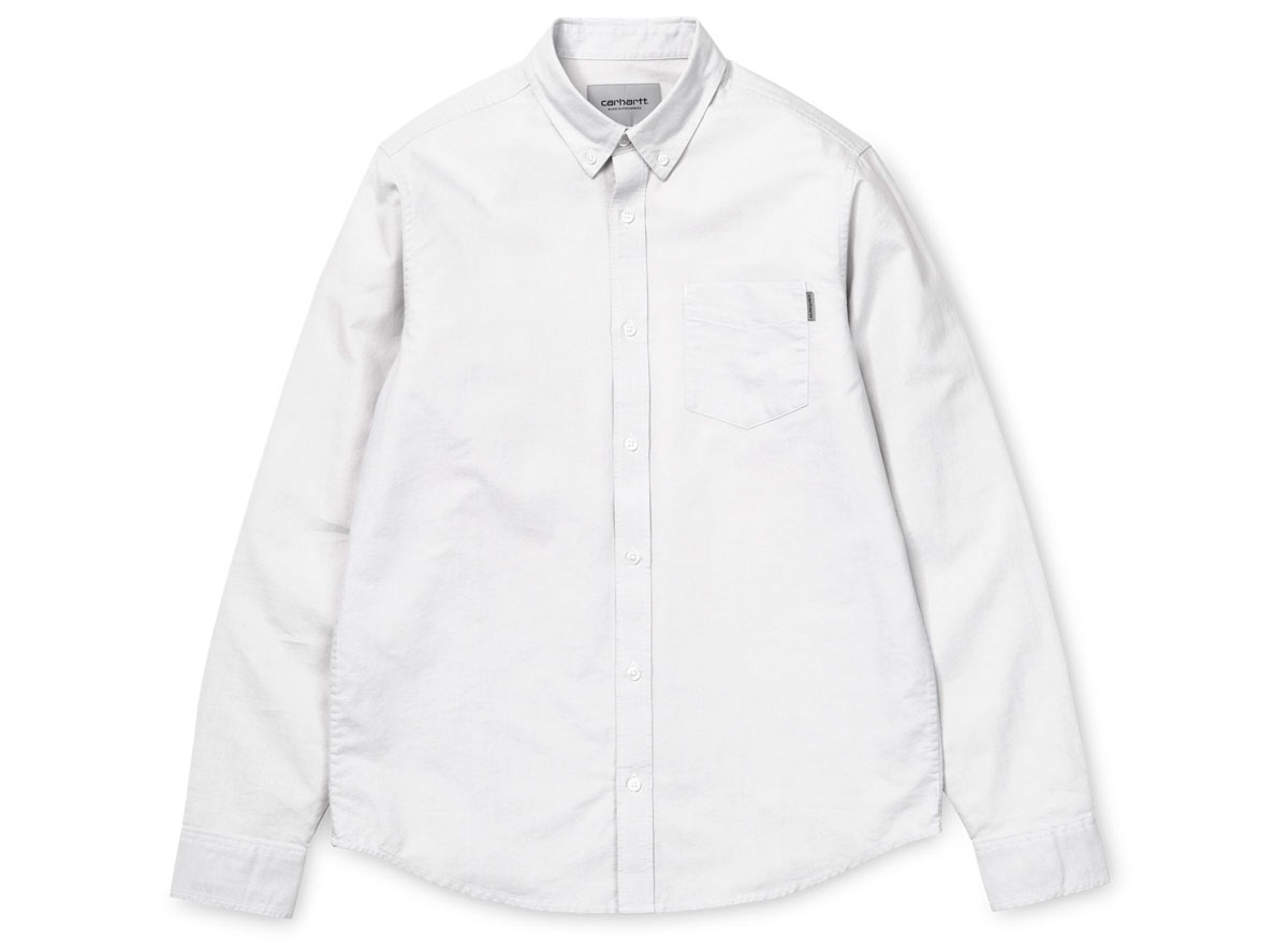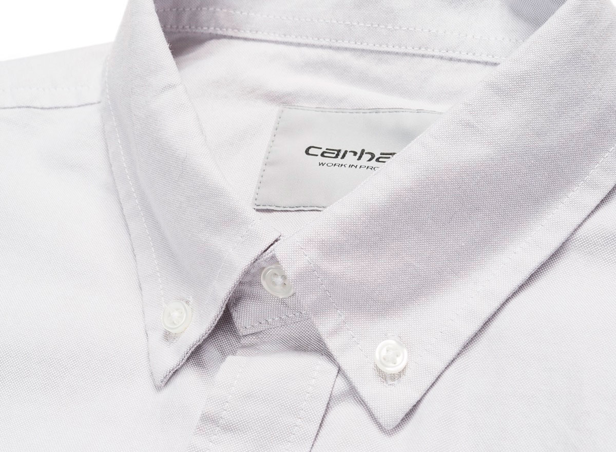 CARHARTT WIP Button Down Pocket Shirt Cinder. Chemise coupe droite confectionnée en coton oxford. Coupe droite. Une poche poitrine. Col et poignets boutonnés. Découpe arrondie sur le bas.