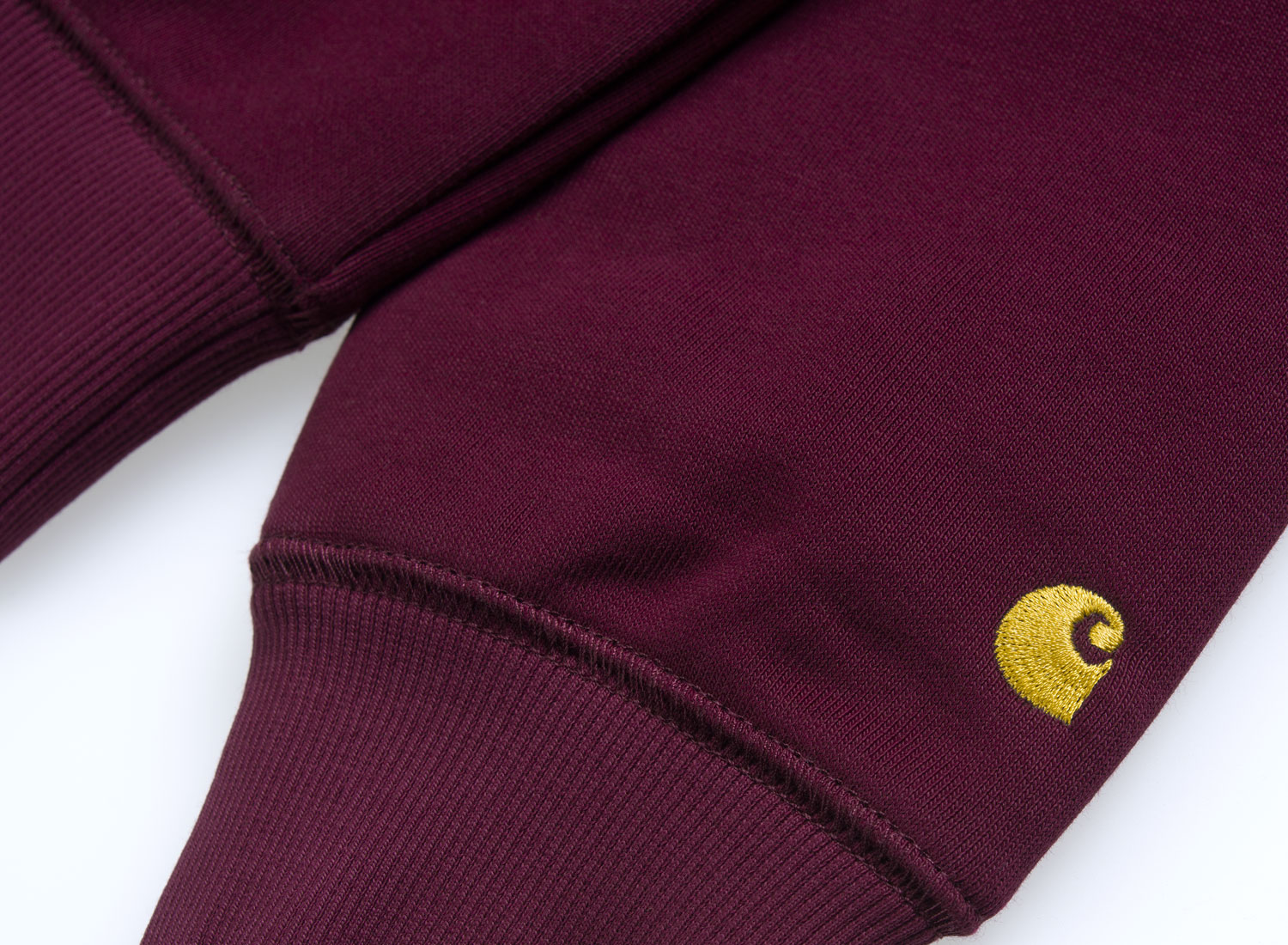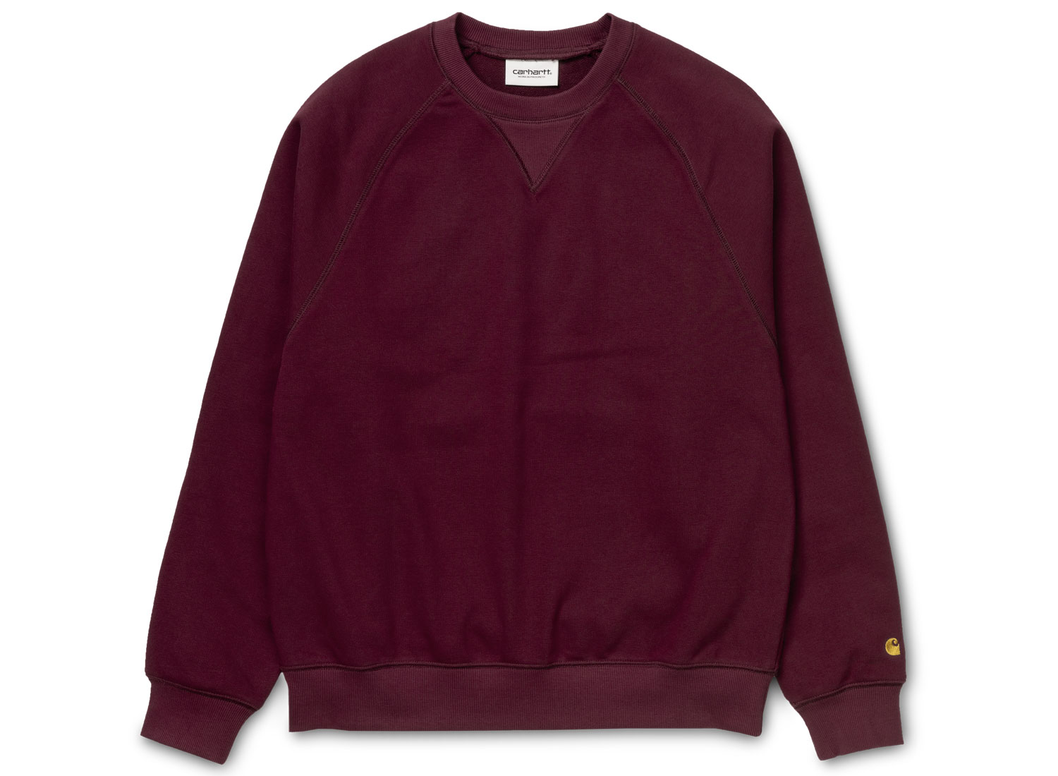 CARHARTT WIP Chase Sweatshirt Mulberry / Gold I026383. Sweatshirt col rond confectionné en molleton épais et confortable. 58% coton / 42% Polyester. Coupe droite. Bords-côtes aux col, aux poignets et sur le bas. Broderie sur la manche.