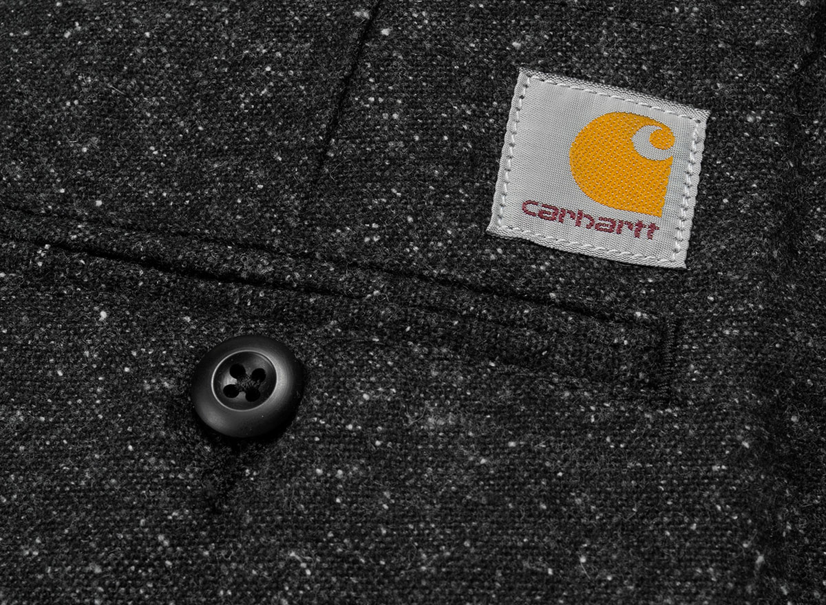 CARHARTT WIP Club Pant Black. Joli pantalon chino en Twill. 100% coton. Coupe tapered regular, taille basse. Braguette zippée. Coutures de renfort. Tab cuir "Square Label" sur l'arrière.