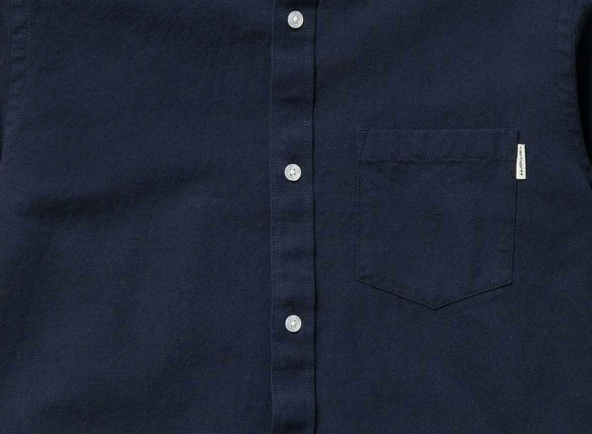 CARHARTT WIP "Dalton Shirt Blue / Black". Très belle chemise composée de coton oxford à 100%. Coupe regular. Col boutonné. Poche poitrine. Etiquette drapeau blanche sur la poche poitrine.