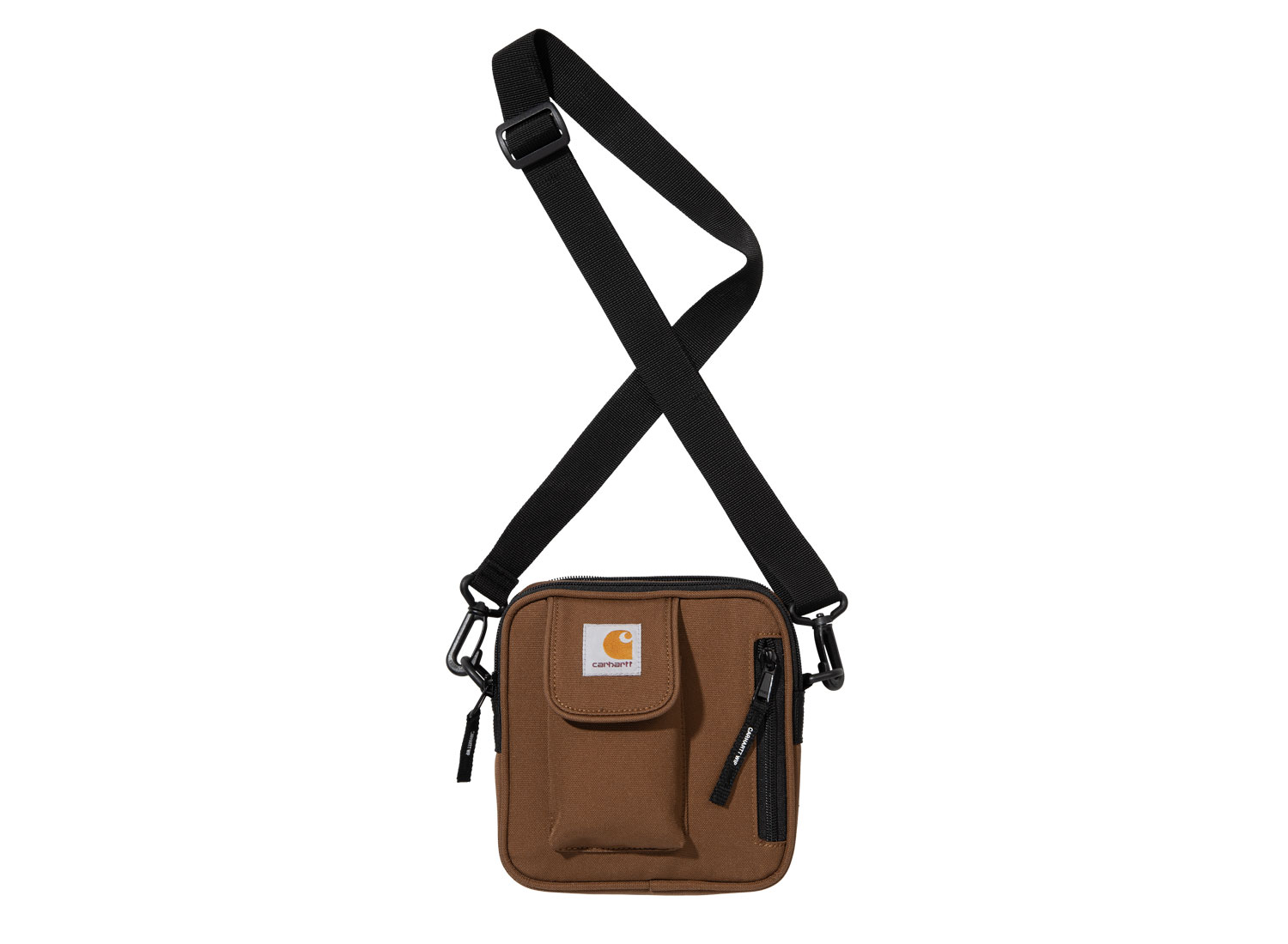 CARHARTT WIP Essentials Bag Small Tamarind I031470. Sacoche "Carhartt Essentials Bag" 100% polyester recyclé. 17 X 16.5 X 6 centimètres. Capacité de 1,7 litres. Tissu déperlant. Deux poches principales avec fermetures. Poche plate sur le devant avec fermeture scratch. Poche sur le devant avec fermeture "zip". Sangle d'épaule ajustable.
