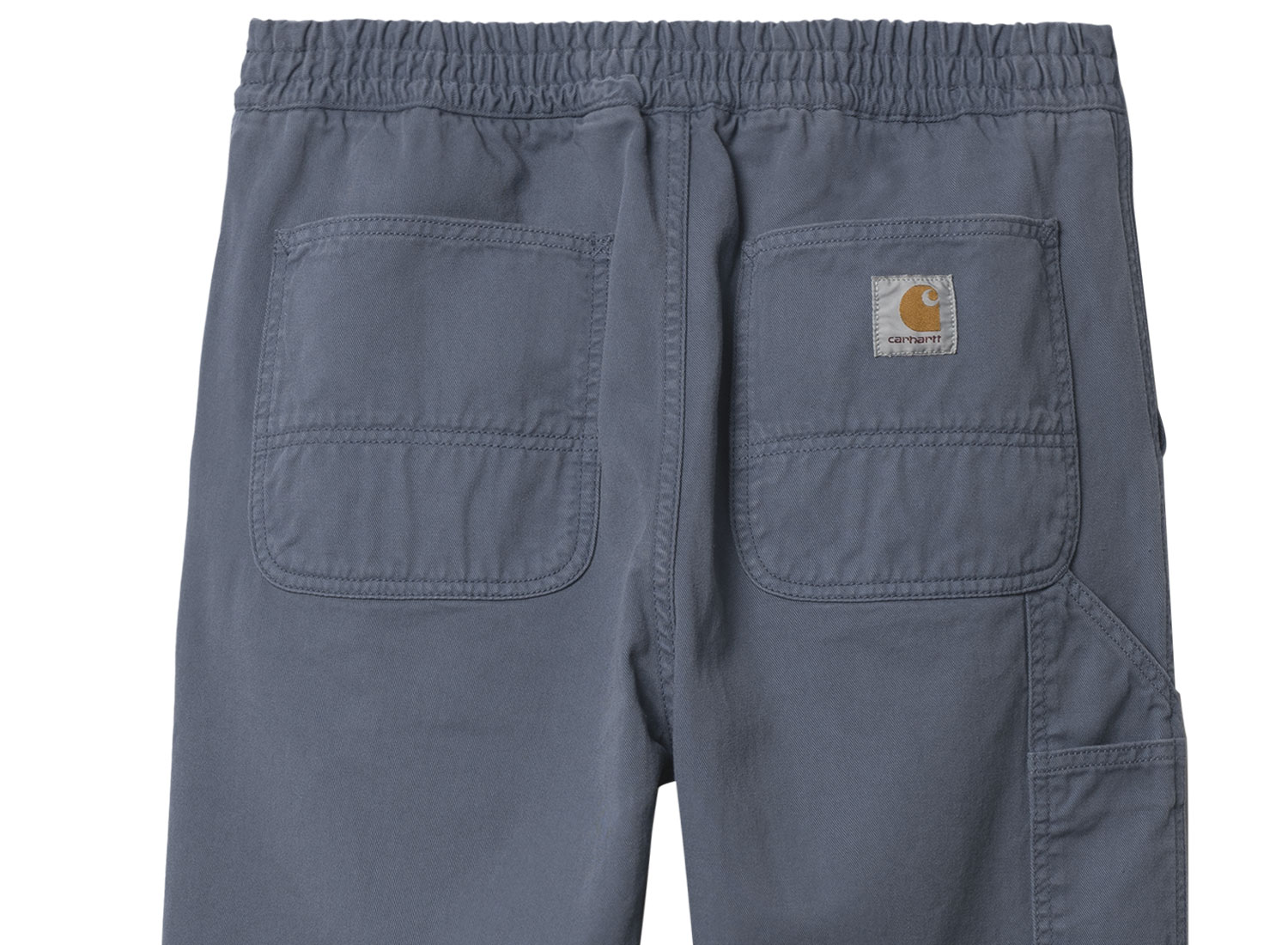 CARHARTT WIP Flint Pant Bluefin I029919. Pantalon coupe carotte confectionné 100% coton organique. Taille élastique avec cordon de serrage. Braguette zippée. Poches côtés. Poches plaquées au dos. Petites poches façon painter.