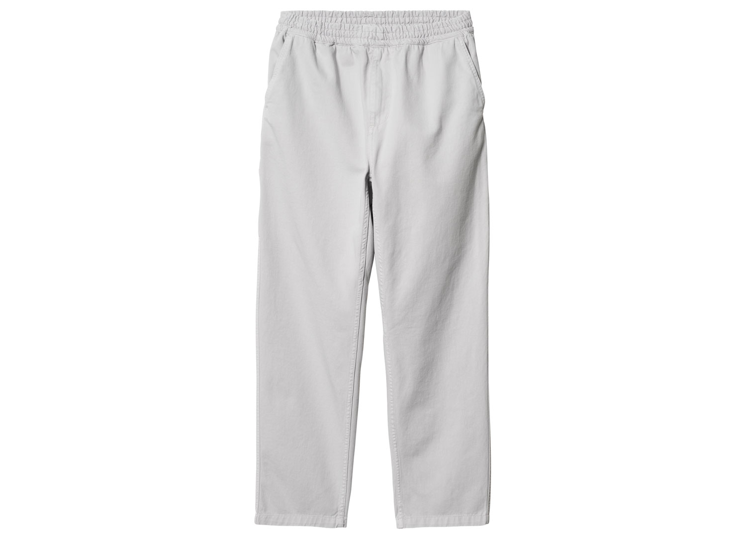 CARHARTT WIP Flint Pant Sonic Silver I029919. Pantalon coupe carotte confectionné 100% coton organique. Taille élastique avec cordon de serrage. Braguette zippée. Poches côtés. Poches plaquées au dos. Petites poches façon painter.