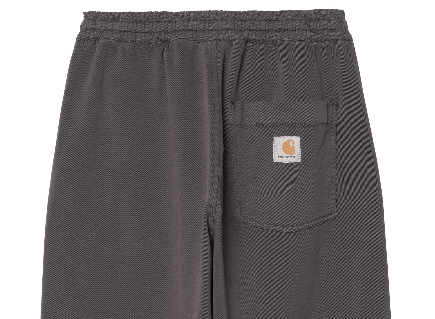 CARHARTT WIP Floyde Pant Graphite Garment Dyed I034816. Pantalon coupe relax confectionné en twill épais. 51 % lyocell, 47 % coton, 2 % élasthanne. Tissu extensible. Taille élastiquée avec cordon de serrage. Tissu teint en pièce. Deux poches latérales. Square Label cousu sur la poche arrière.