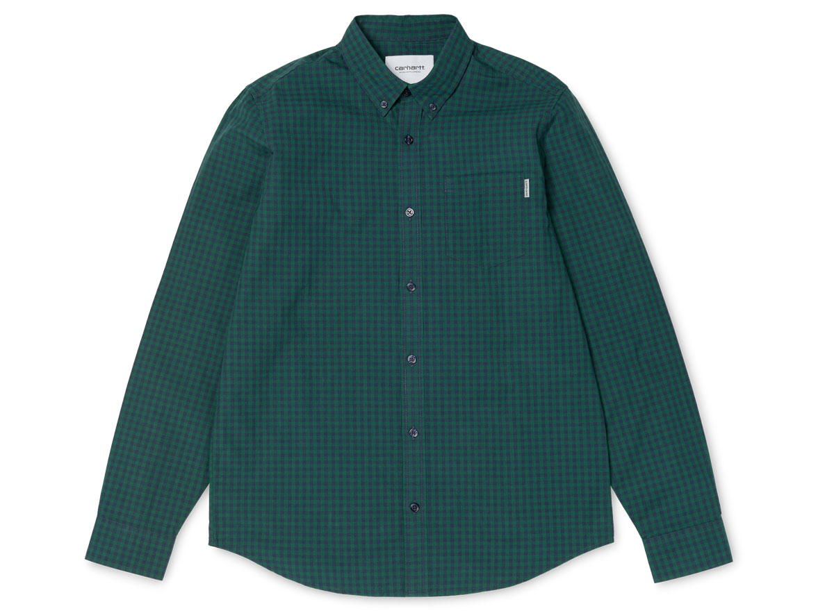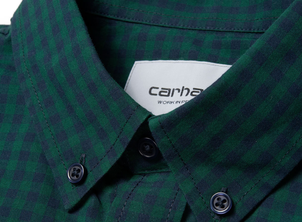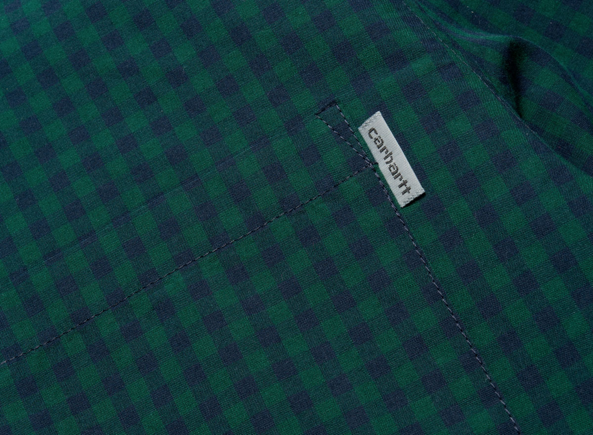 CARHARTT WIP Frost Shirt Navy / Hedge I023333. Très belle chemise à carreaux. Popeline 100% coton. Coupe slim. Tissé-teint. Col boutonné. 1 poche sur la poitrine.