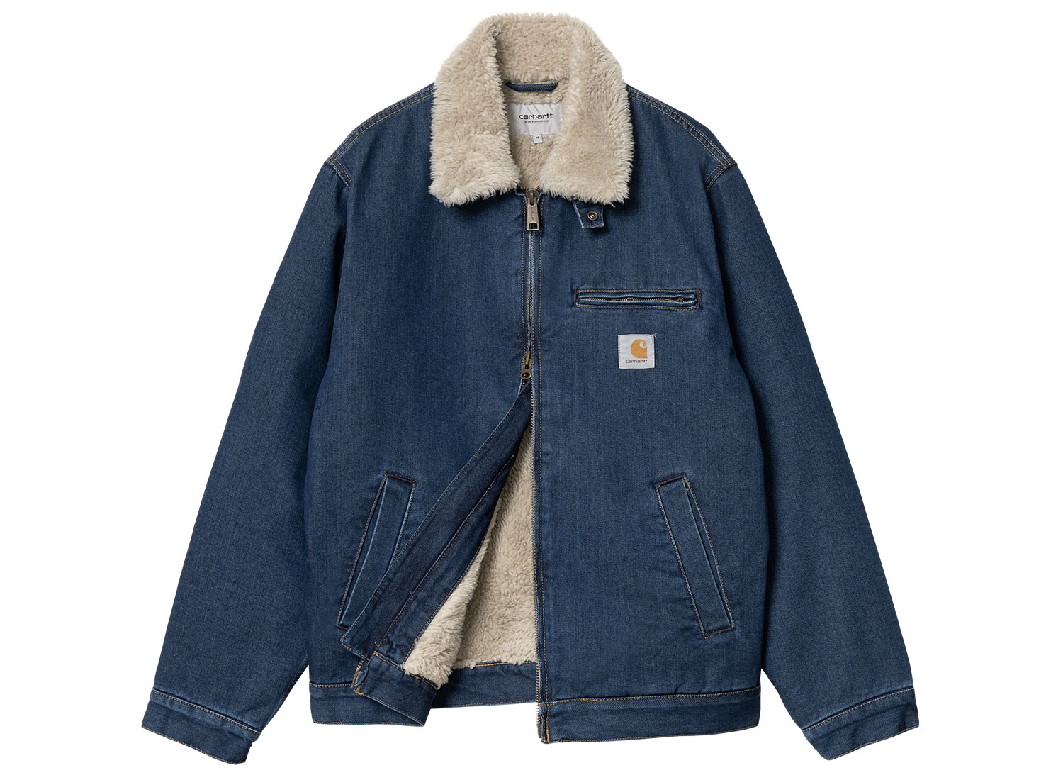 CARHARTT WIP Herald Jacket Blue / Wall Stone Washed I033765. Veste confectionnée en denim de coton épais. 100 % coton biologique. Doublure en polaire au niveau du corsage. Doublure matelassée au niveau des manches. Deux poches passepoilées. Une poche poitrine zippée. Bas et poignets ajustables. Square Logo.