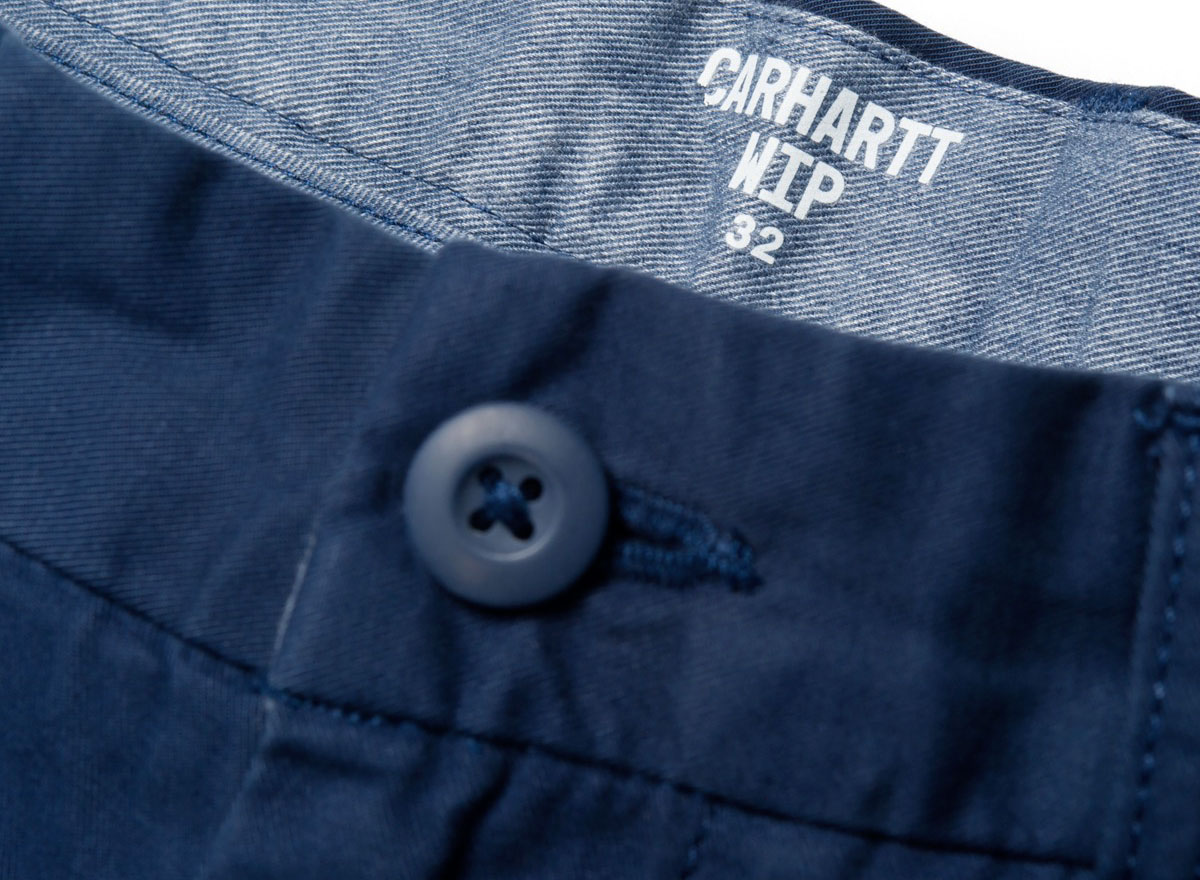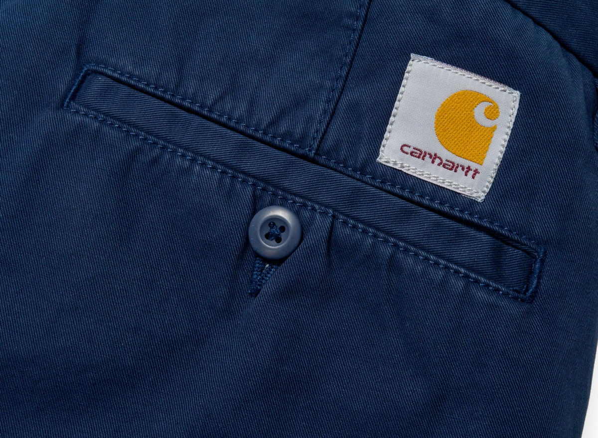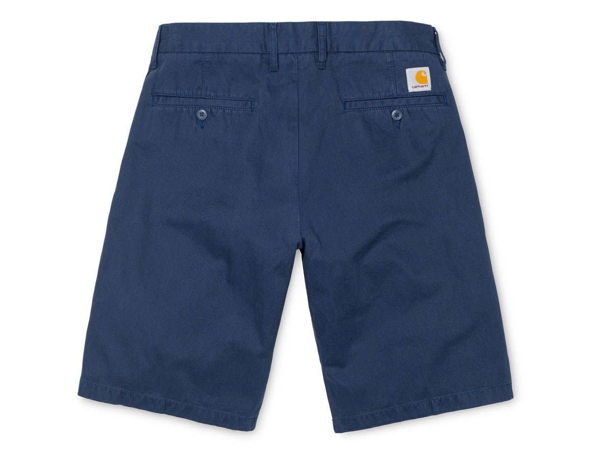 CARHARTT WIP Johnson Short Blue. Short Chino coupe regular en twill 7oz 100% coton. Deux poches à l'italienne sur les côtés et deux passepoilées sur l'arrière. Braguette zippée. Étiquette carrée sur l'arrière.