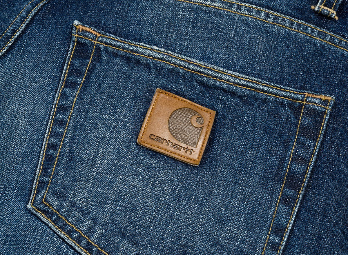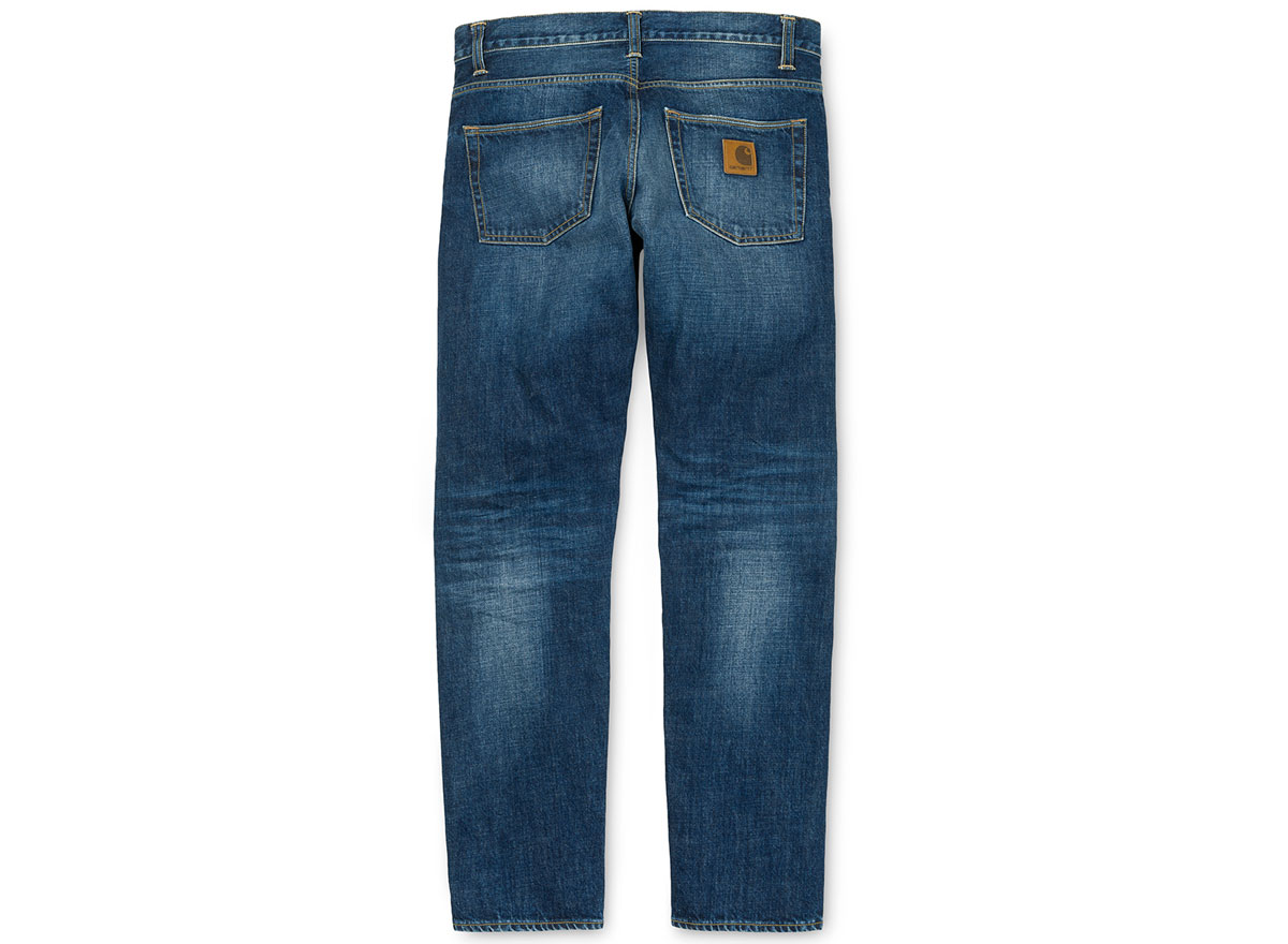 CARHARTT WIP Klondike Pant Blue Denim Natural Dark Wash. Denim 5 poches coupe regular 100% cotton 11,75oz. Taille basse. Empiècement sur l'arrière. Rivets métal et coutures de renfort. Braguette zippée. Patch cuir.