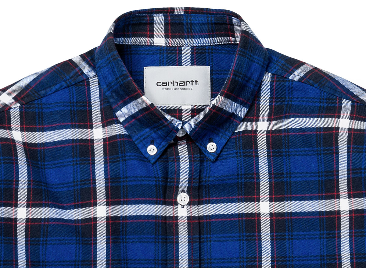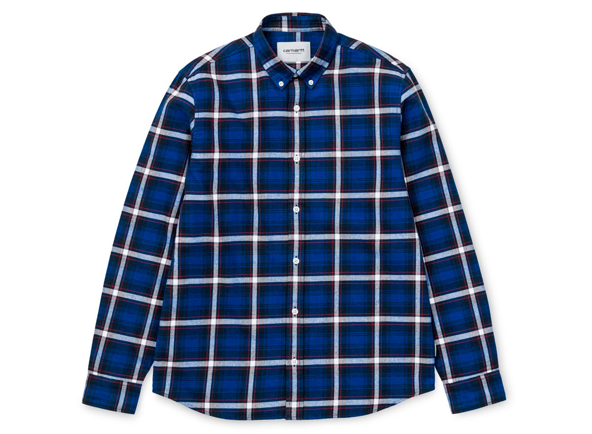 CARHARTT WIP WIP Lamont Shirt Deep Sea. Chemise carreaux flanelle de coton. Coupe droite. Col et poignets boutonnés. Découpe arrondie sur le bas.