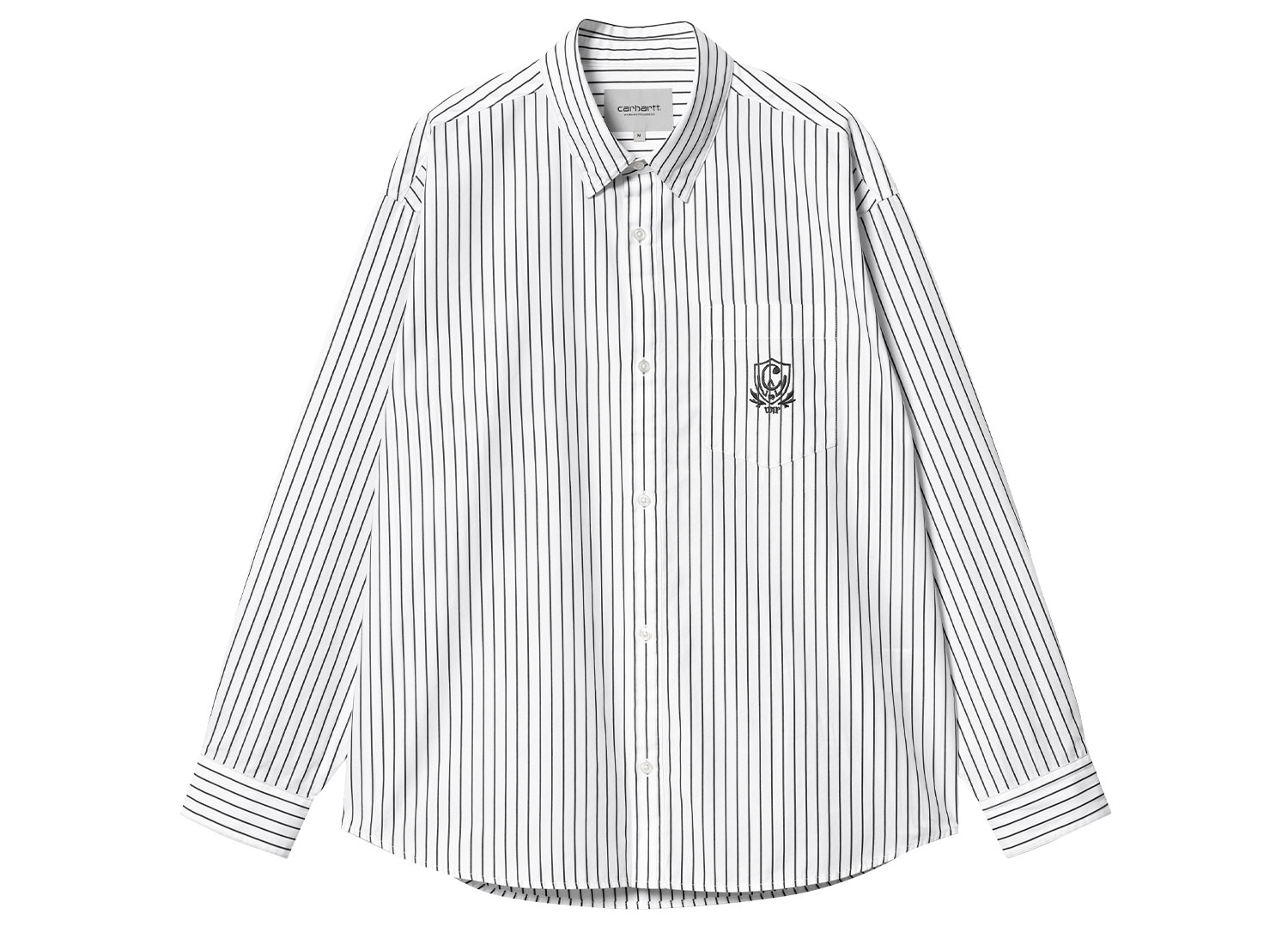 CARHARTT WIP Linus Stripe Shirt Black / White I033029. Chemise à rayures confectionnée en popeline de coton légère. Tissu pré-lavé. 100 % coton. Coupe loose. Broderie sur la poitrine.