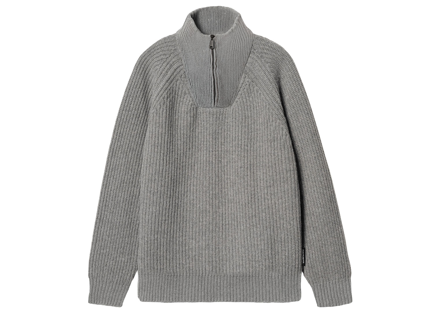 CARHARTT WIP Marlon Half Zip Sweater Grey I033913. Pull à col camionneur zippé tricoté à partir d'un mélange de fibres de laine épaisse. 80 % laine, 20 % polyamide. Manches raglan. Flag Label.