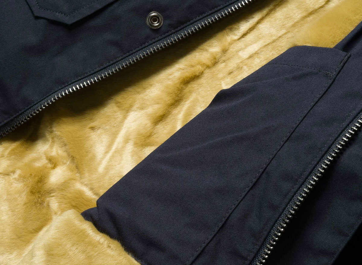 CARHARTT WIP Mentley Jacket Navy. Parka à capuche déperlante 65% polyester / 35% coton. Coupe droite. Doublure douillette façon fourrure. Cordons de serrage sur la capuche et à la taille. Poignets ajustables. Fermeture zippée avec rabat à boutons pressions. Logo Carhartt "Square Label" en cuir.