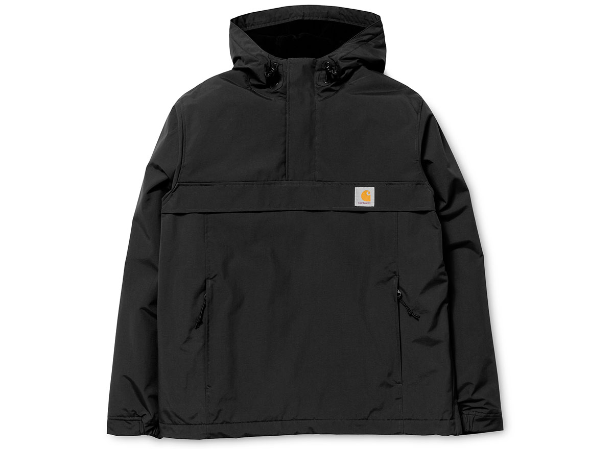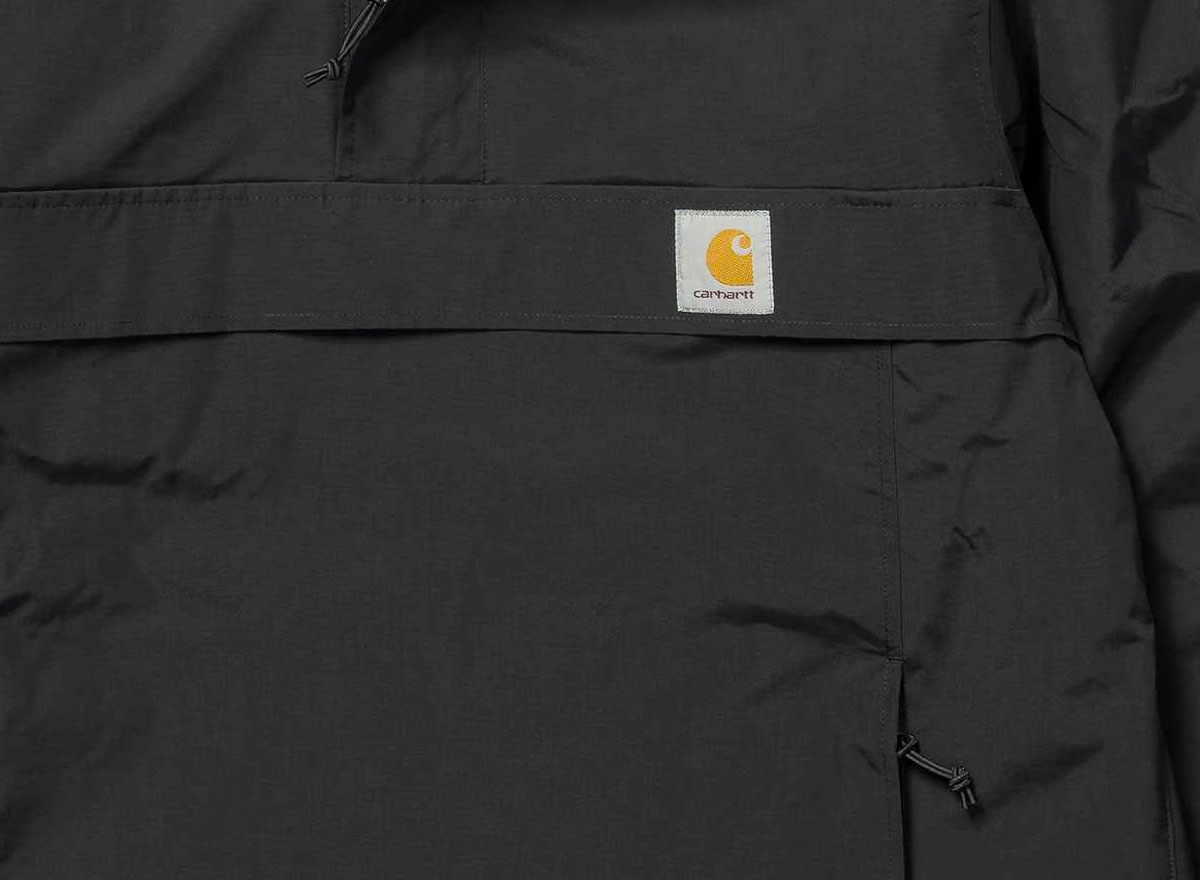 CARHARTT WIP Nimbus Pullover Black. Parka vareuse 100% Nylon Supplex© imperméable. Doublure polaire. Capuche et bas ajustable. Ouvertures latérales zippées. Grande poche sur l'avant. Square label cousu sur l'avant.