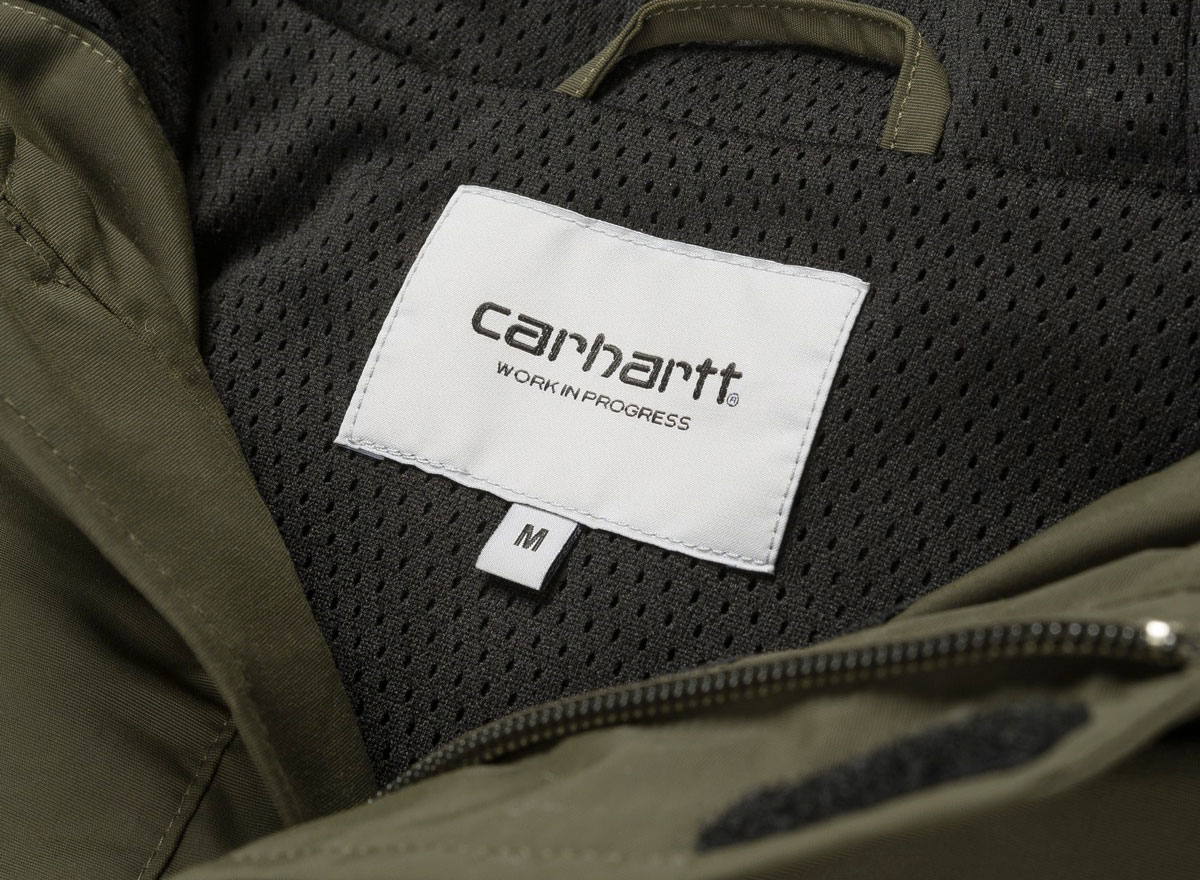 CARHARTT WIP Nimbus Pullover Summer Cypress. Parka vareuse 100% Nylon Supplex© imperméable. Doublure mesh. Capuche et bas ajustable. Ouvertures latérales zippées. Grande poche sur l'avant. Square label cousu sur l'avant.