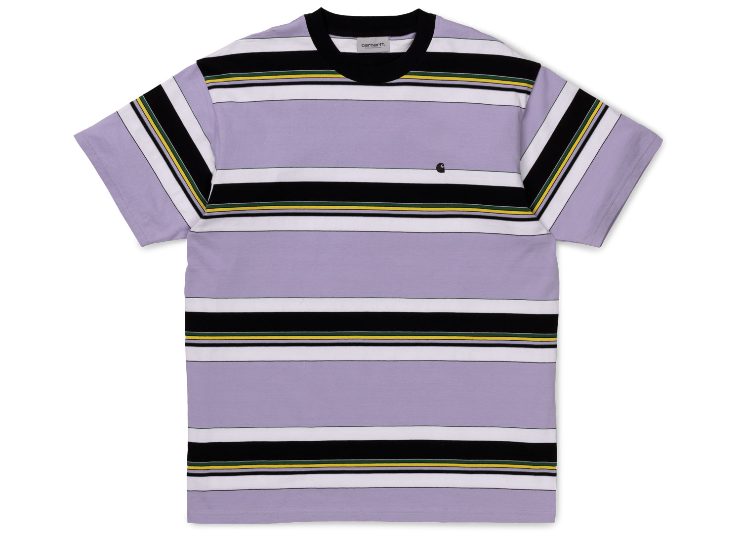 CARHARTT WIP Ozark Tshirt Stripe Soft Lavender I026368. T-shirt rayé confectionné en jersey de coton. Coupe regular. Bord-côte contrasté au col. Broderie sur la poitrine.