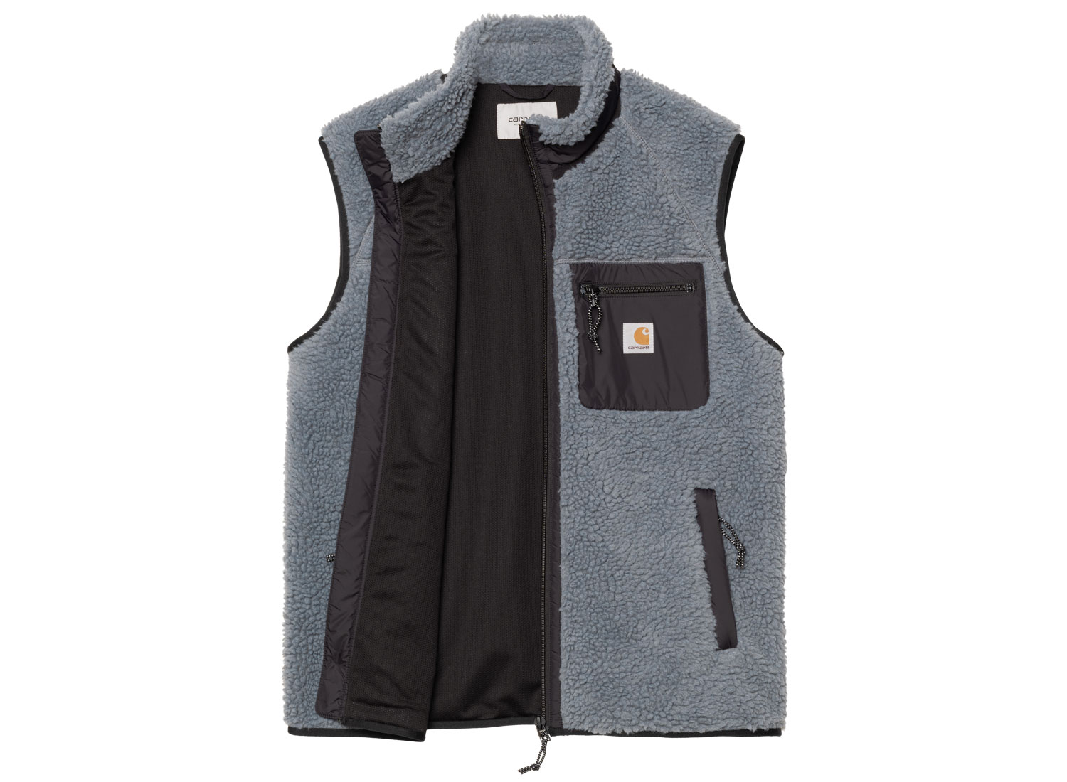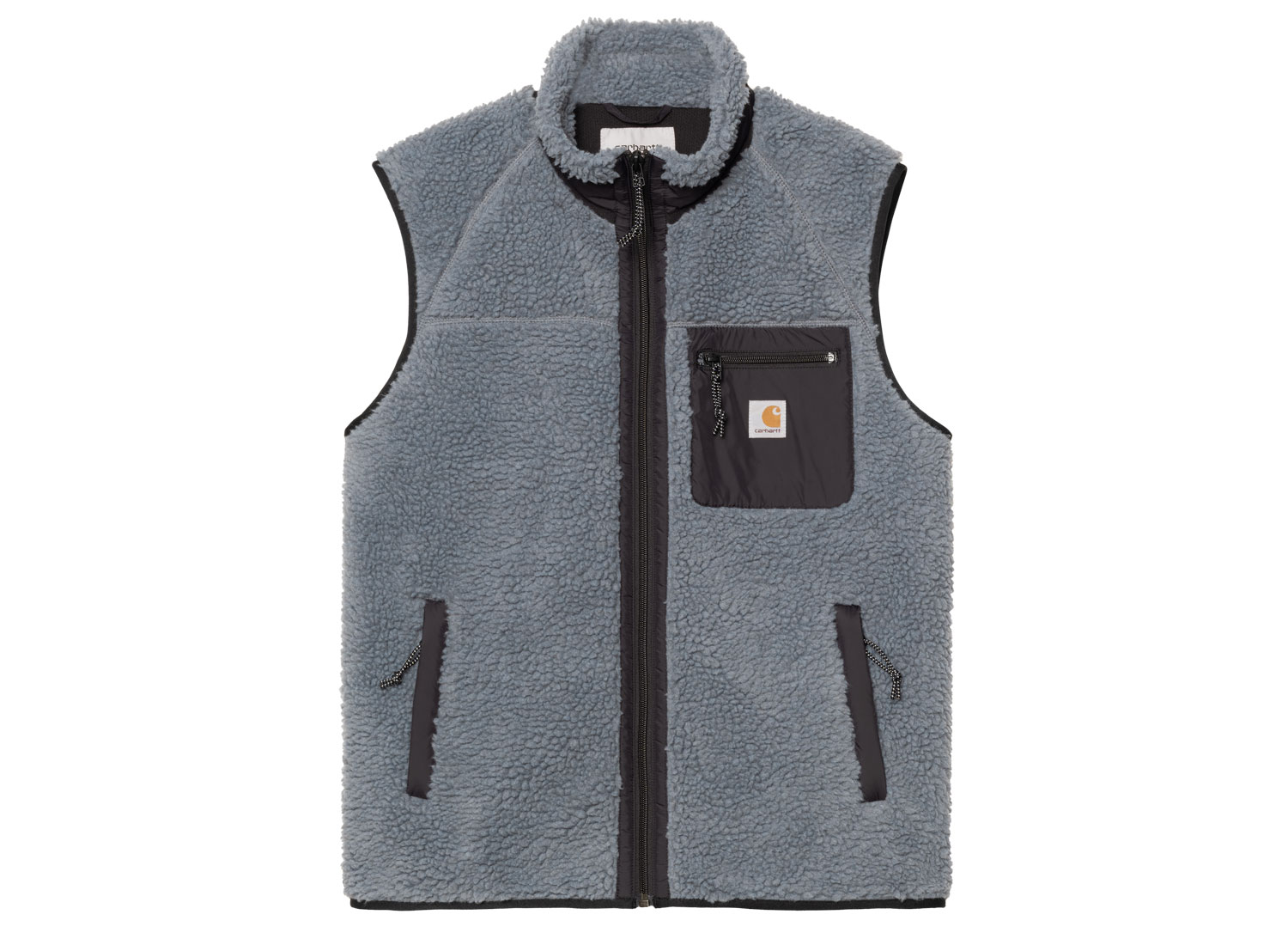 CARHARTT WIP Prentis Vest Liner Dove Grey / Black I026719. Gilet sans manche coupe regular confectionné dans une polaire Sherpa 100% polyester. Fermeture zippée. Doublure filet. Poches zippées sur le bas et la poitrine. Détails en nylon.