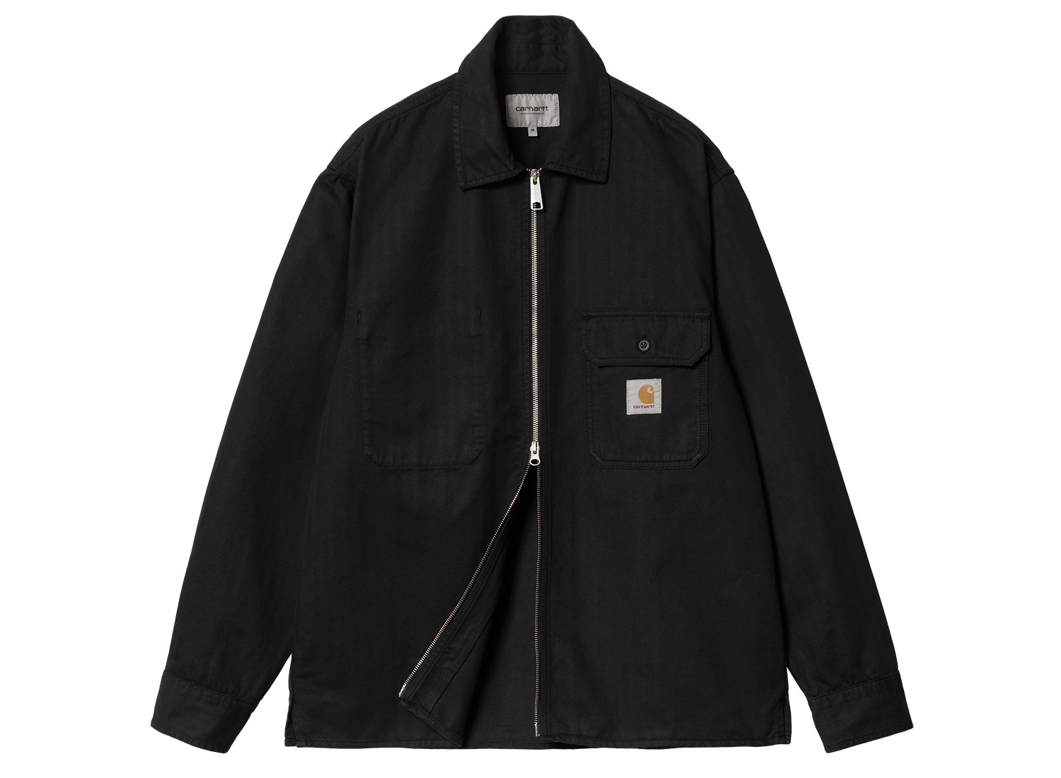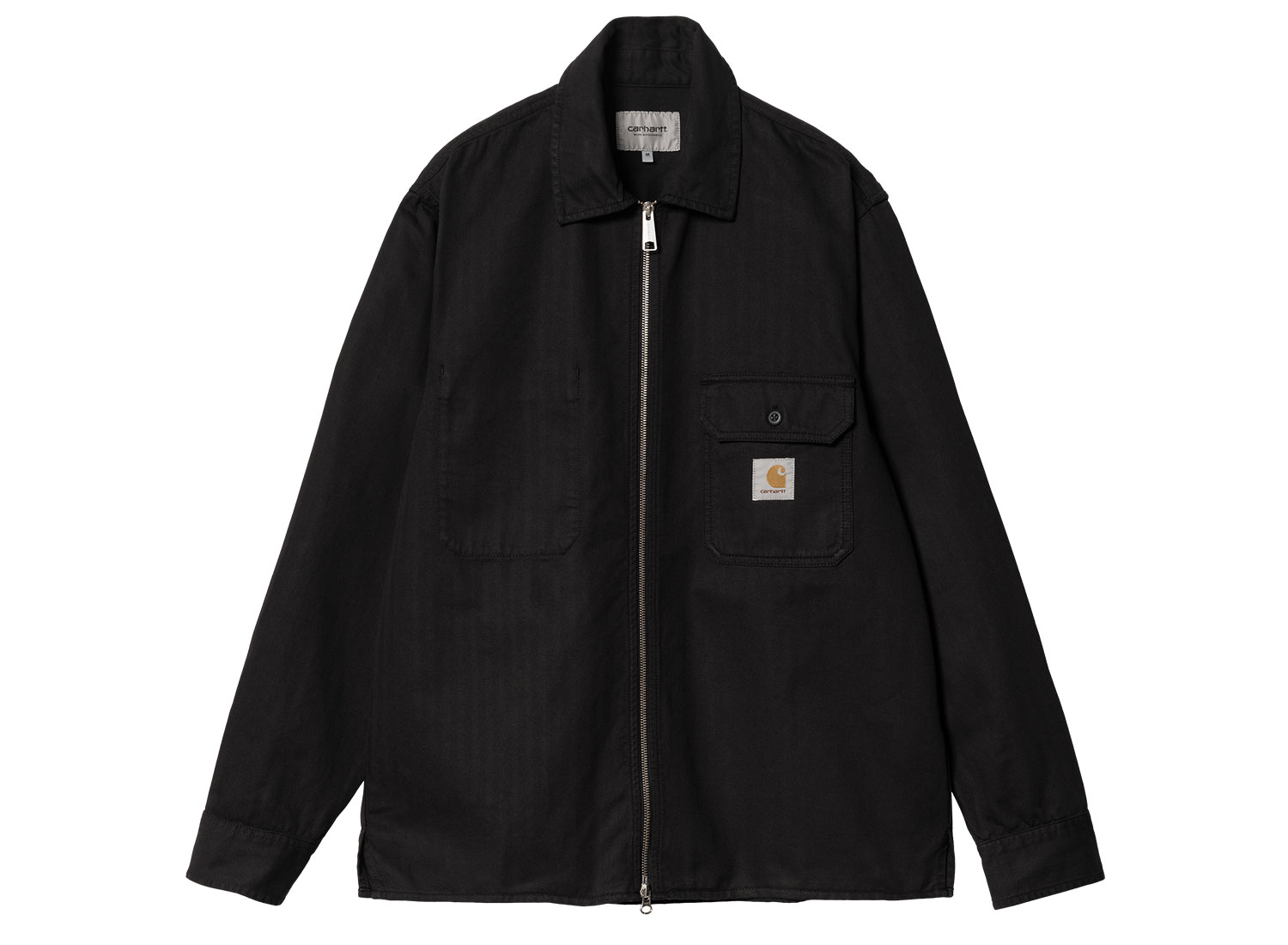 CARHARTT WIP Rainer Shirt Jac Black Garment Dyed I033276. Veste-chemise confectionnée en coton herringbone semi-épais. Tissu teint. Zippée à l'avant. Deux poches poitrine, une extérieure, une intérieure. Non doublé. Square Label.